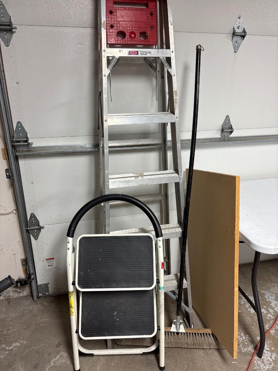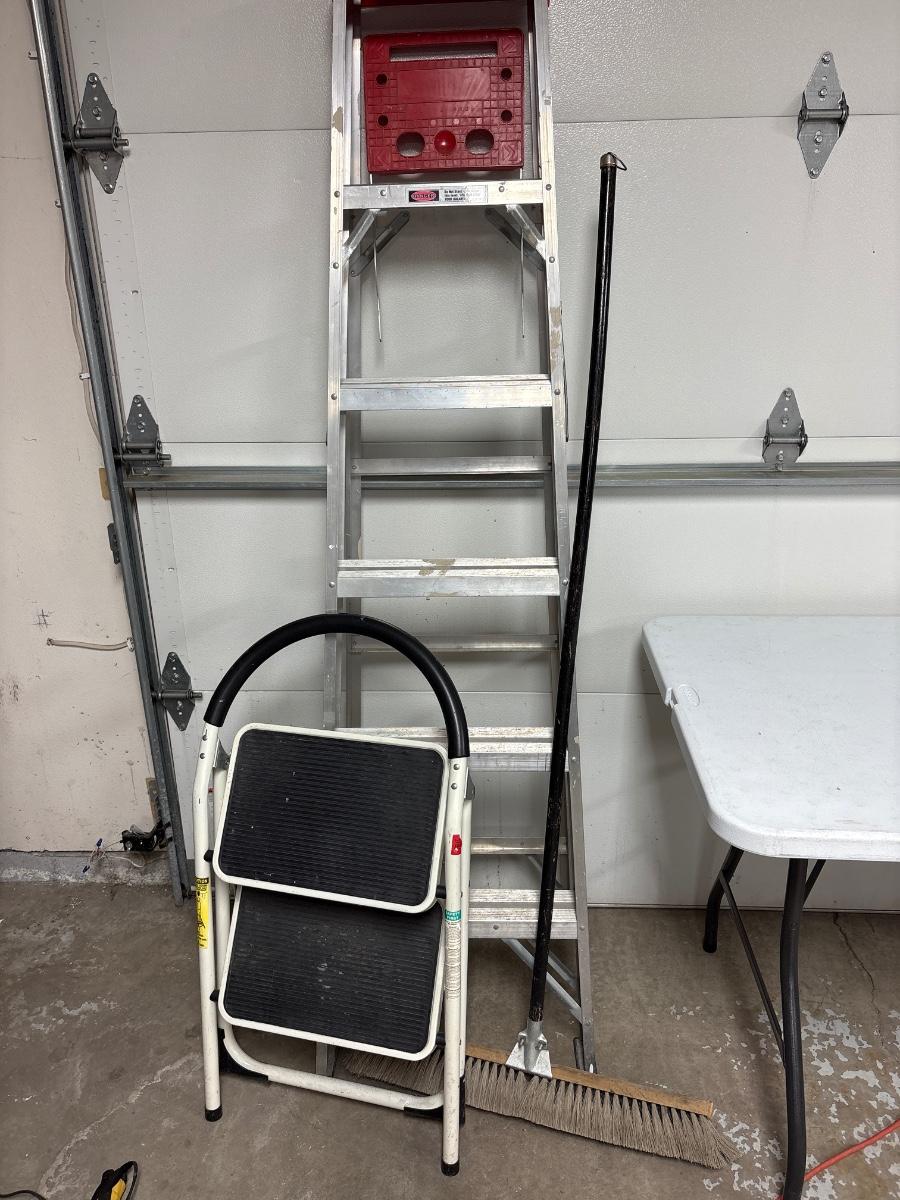 Keller 6’ aluminum ladder, stepladder, broom & board