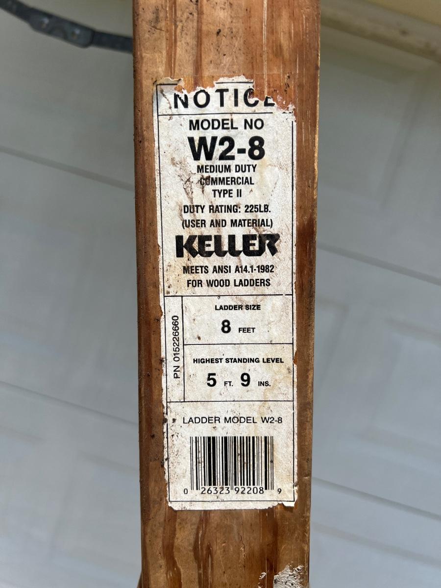 Keller Model W2-8. 8ft wooden ladder. Good condition. Very solid.