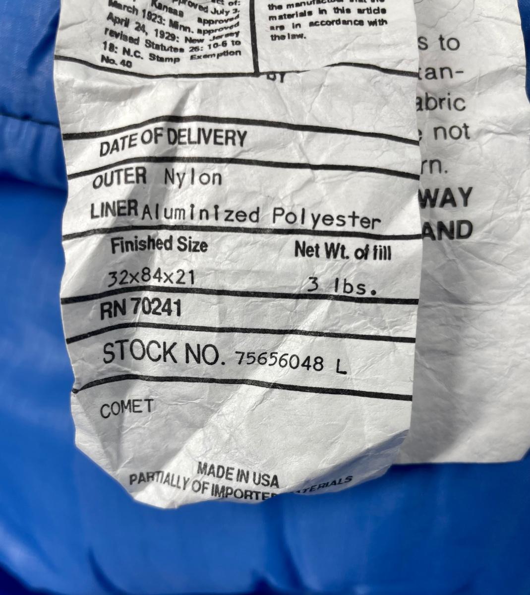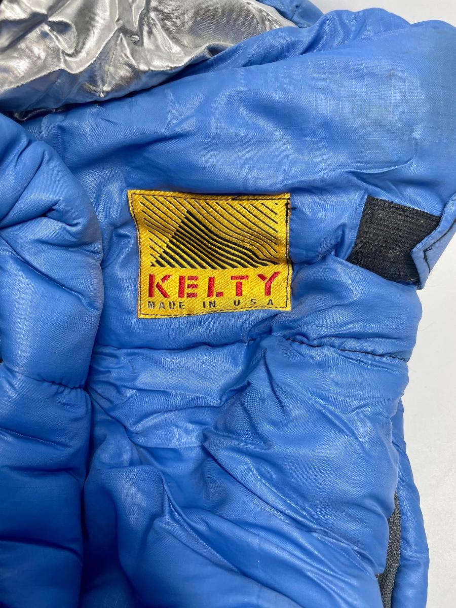 Kelty Sleeping Bag. Includes nylon packing bag with drawstring closure. Can be used for backpacking or camping. Mummy style with closure at head to keep in warmth. Filled with Hollofil II, very light and warm.
