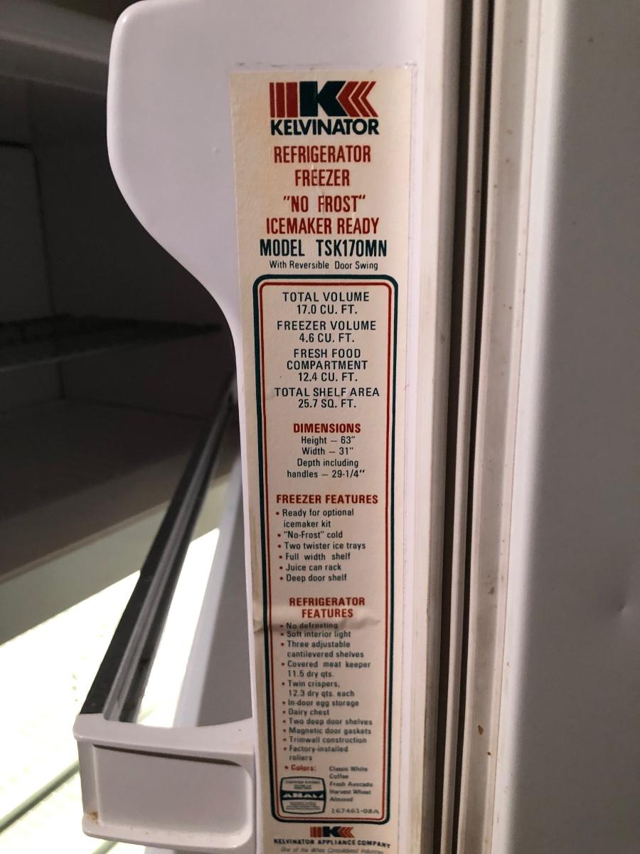 17 cu. Ft No frost & ice maker ready refrigerator/freezer. Model TSK170MN