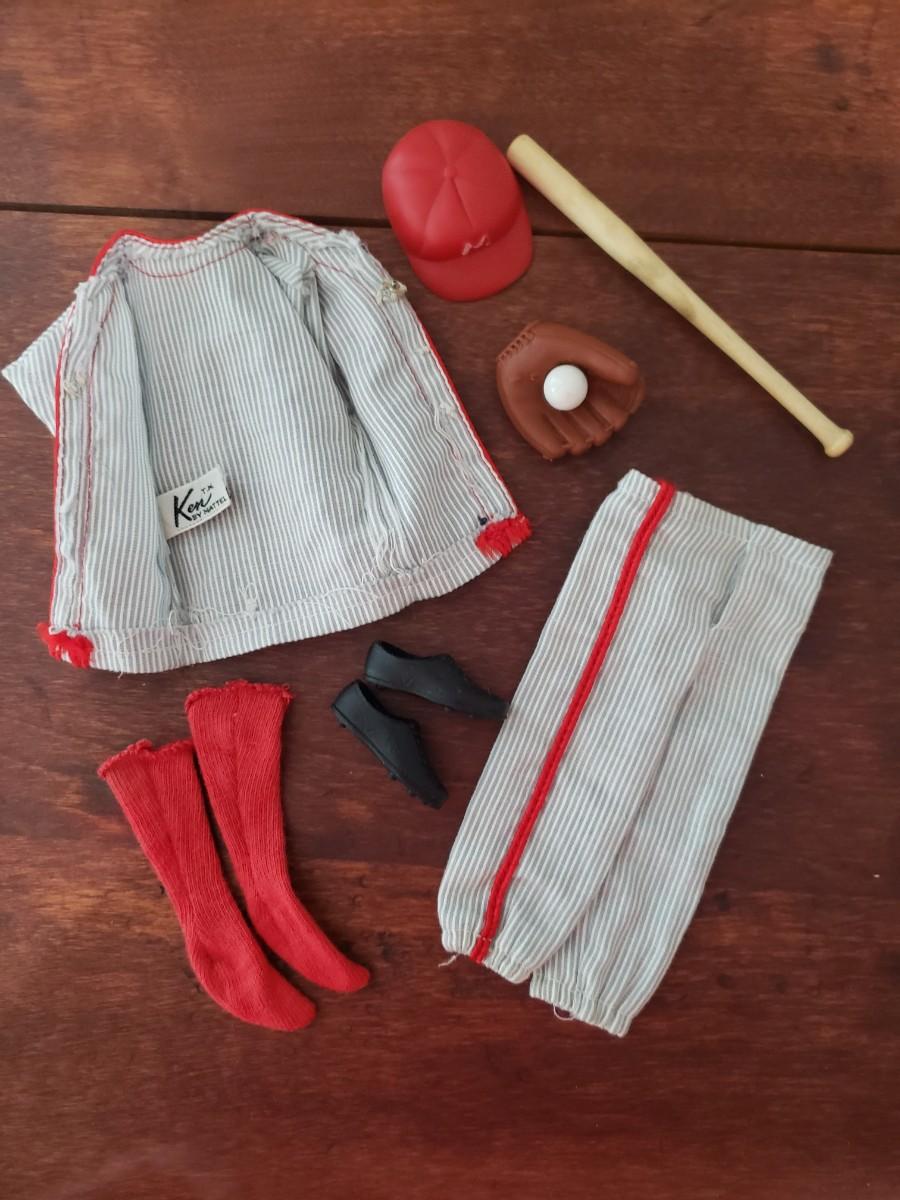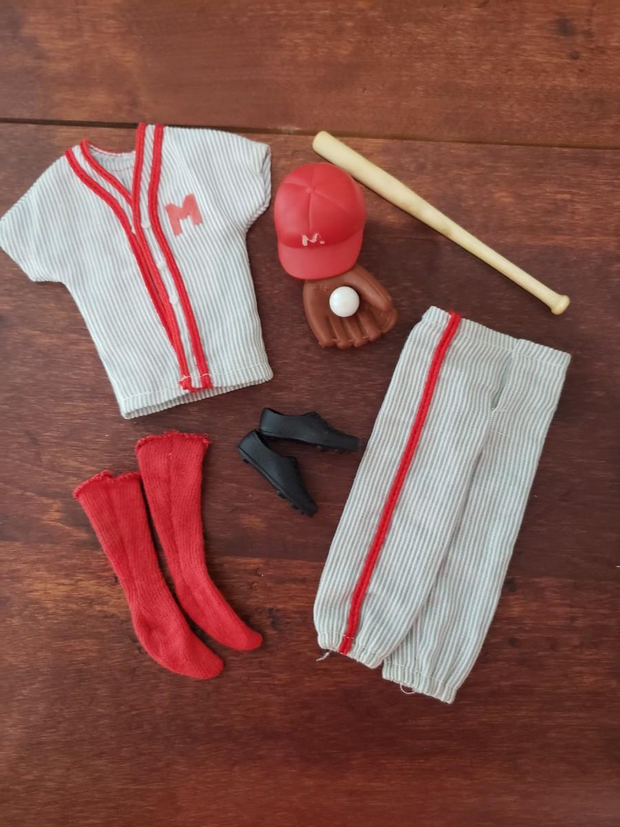 Ken doll "Play Ball" complete set. Includes uniform shirt, pants red socks, cleats, Ball, bat & mitt.
