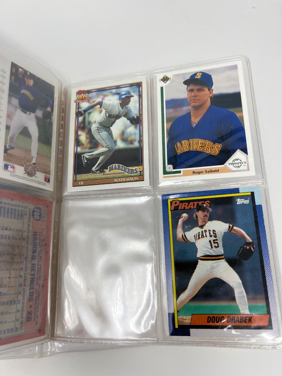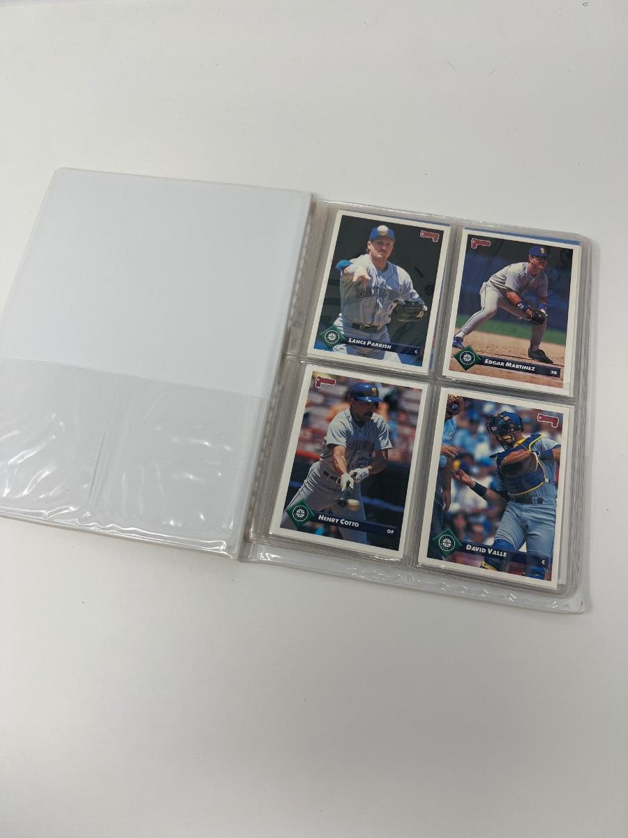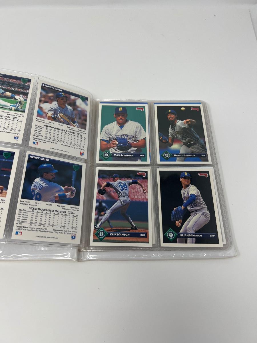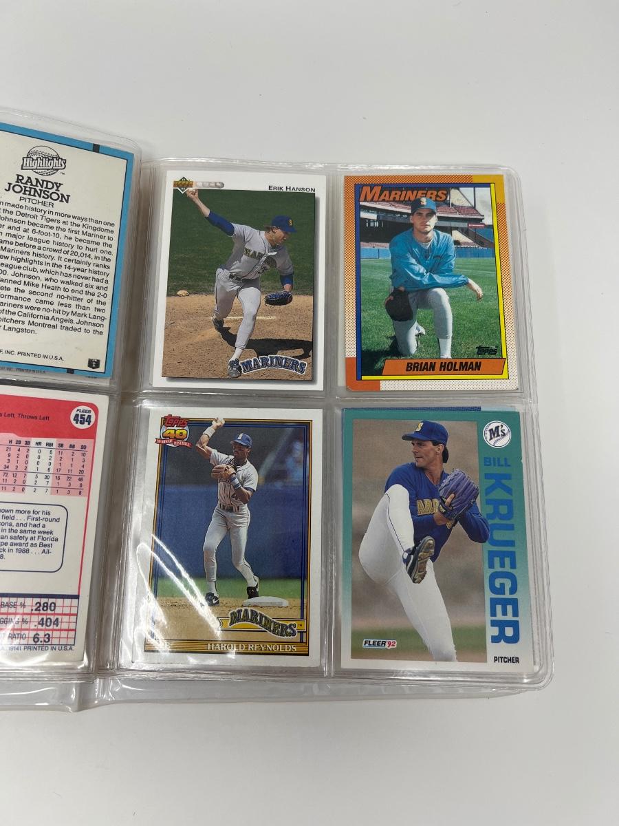 Mariner Baseball baseball card holder and various player cards - includes Martinez, Johnson, Hanson, Reynolds and more (see pictures)