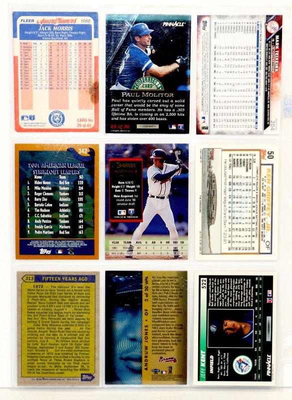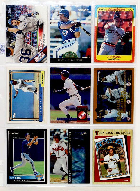 KEN GRIFFEY Jr Roberto Clemente JEFF KENT Mark Teixeira BASEBALL CARDS SET OF 9 - MINT