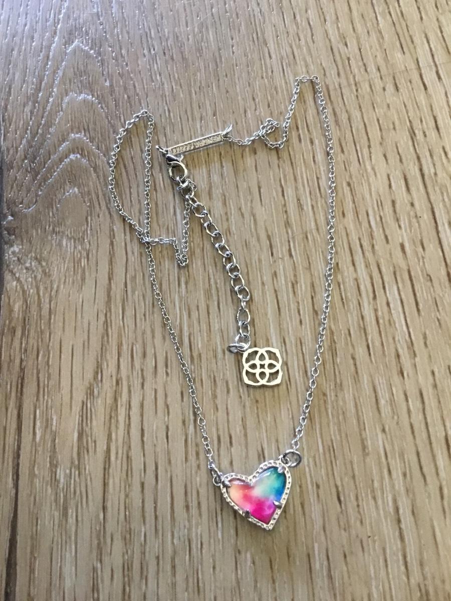 Kendra Scott, silver toned, cotton candy, heart dainty necklace