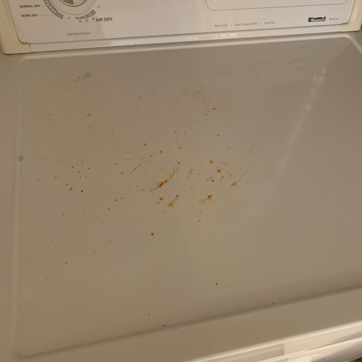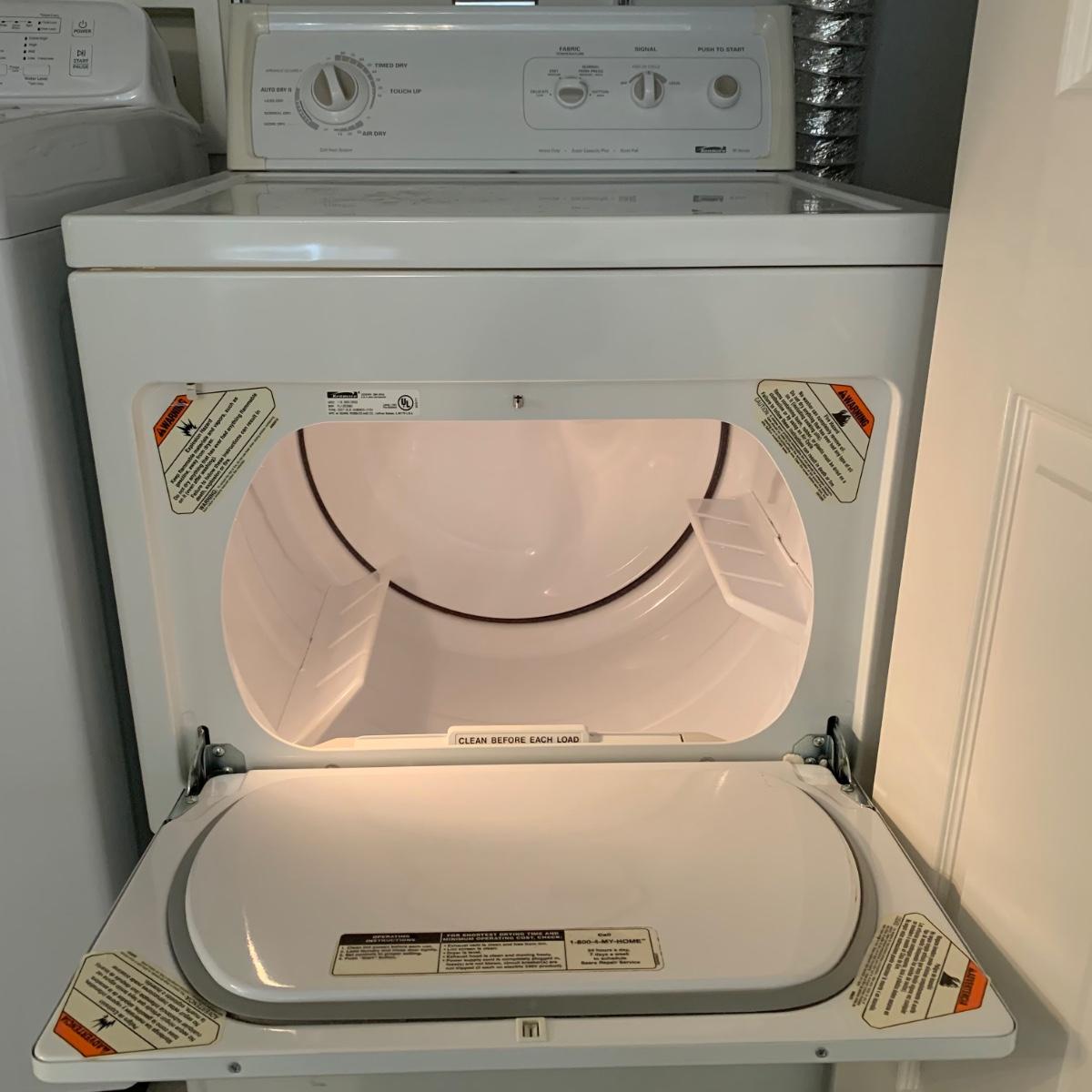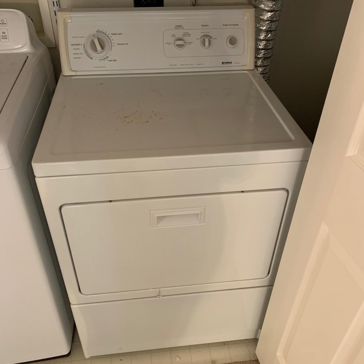 Kenmore 90 Series front load clothes dryer. Measures 27” x 26” x 44”H. Dryer powered on when tested. There is some slight rust on the top surface. Please see photos for model number.