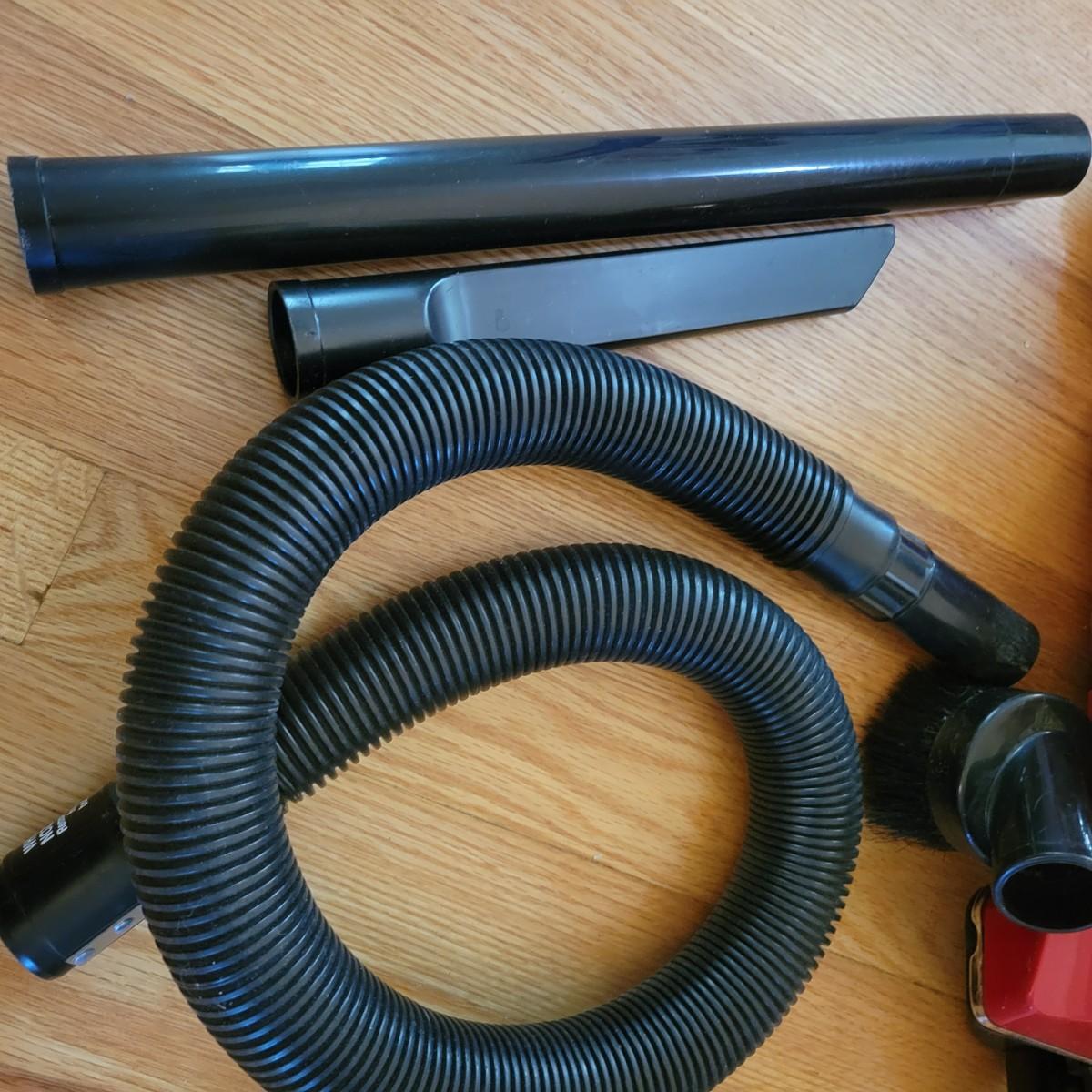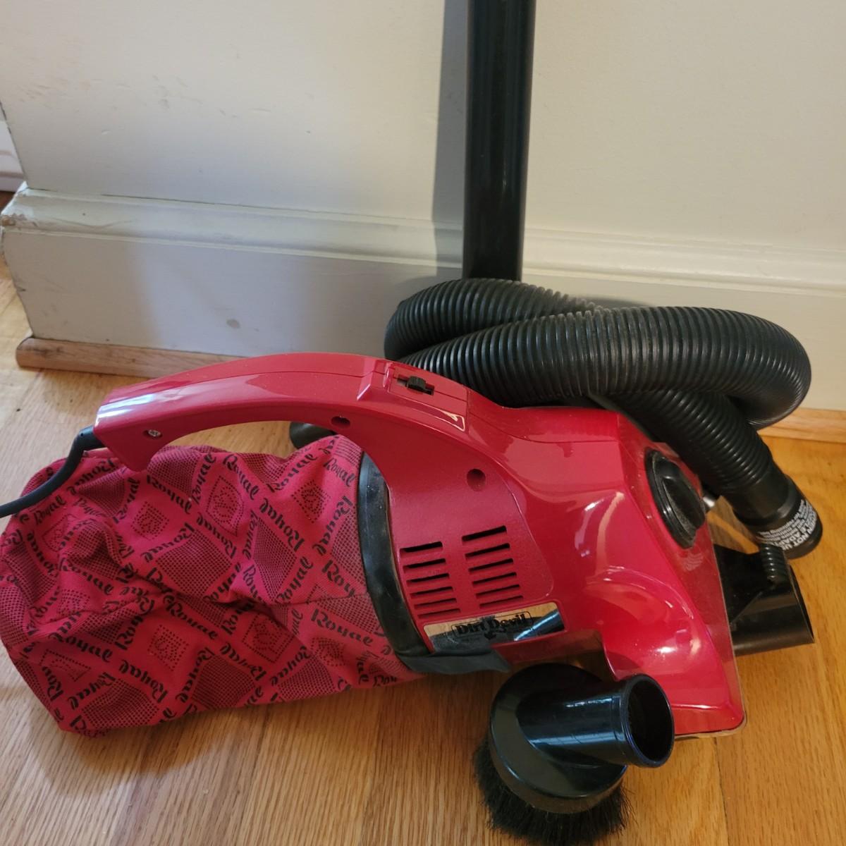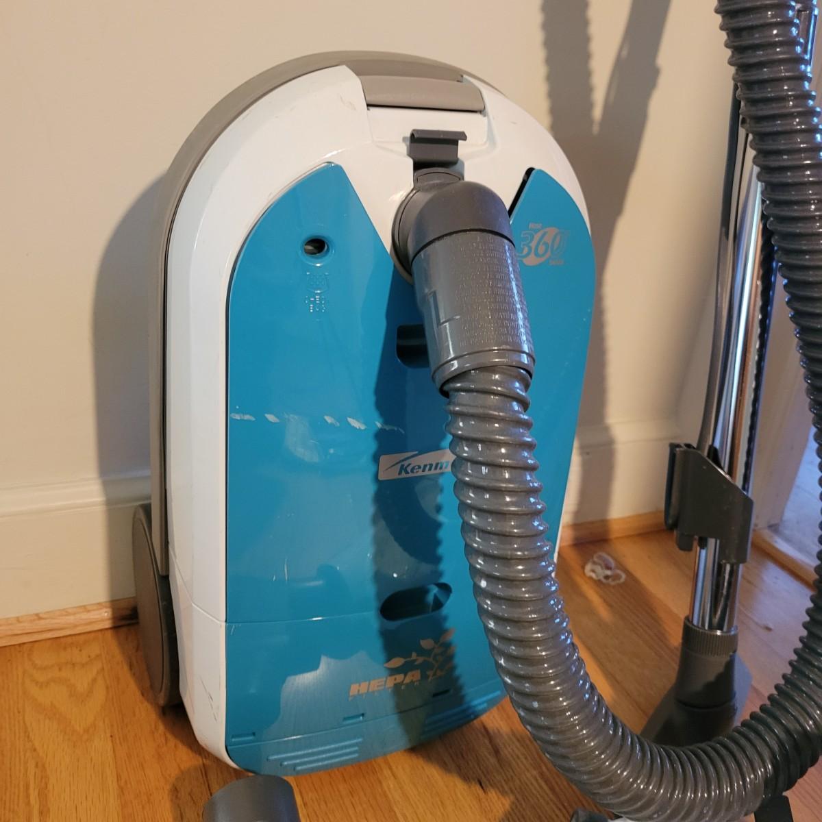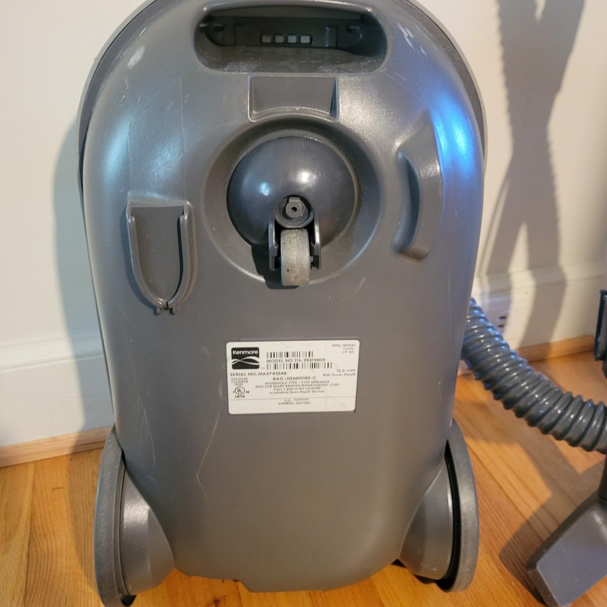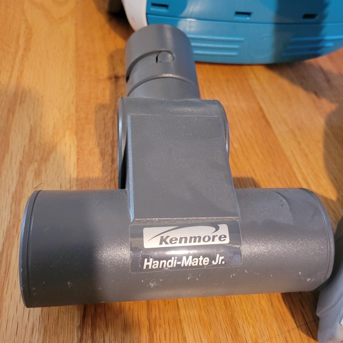 A Kenmore and Dirt Devil vacuum in good condition. Both items were tested and work. The Kenmore is model# 116.29319800 and is swivel hose with a separate bag canister. Includes heads for furniture, hardwood floors and a power head for carpet. Also includes extra bags. Measures approximately 11" x 19" x 9" hose is approximately 6'. Lot also includes a Dirt Devil hand vac with accessories. Model # 103 Local pickup only