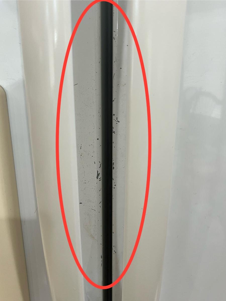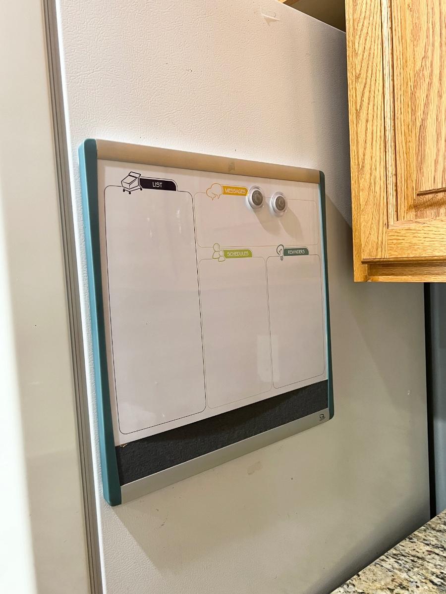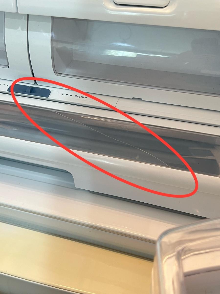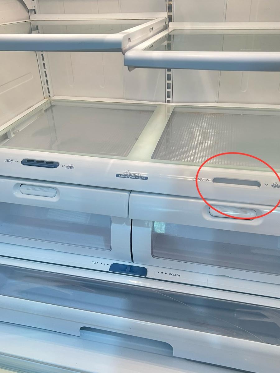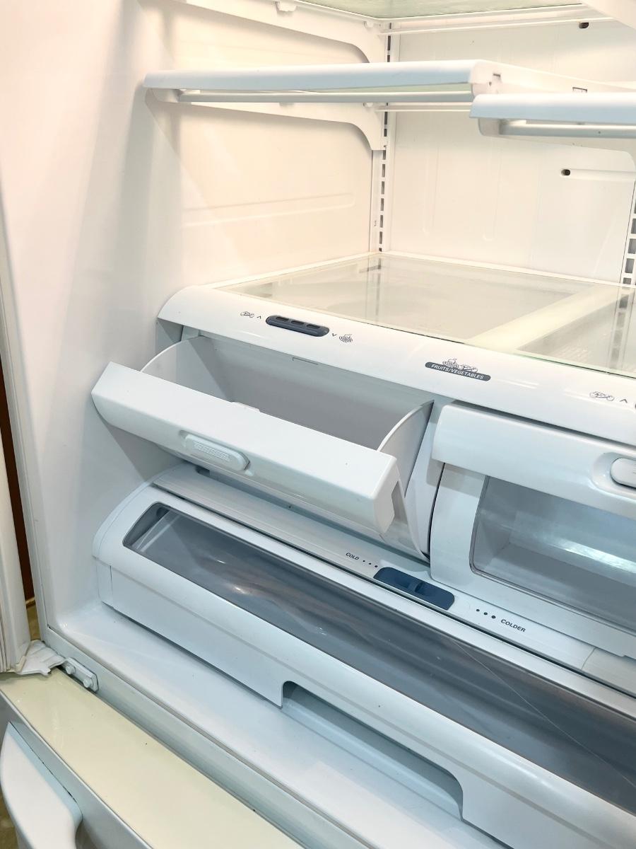 Water dispenser & ice maker works ~ Fridge has wear & tear, see photos ~ Works great ~ Be prepared to unhook waterline to fridge, bring tools ~ Dry erase board is stuck with adhesive to the side of the fridge ~ 70” H x 36.5” W x 37” D