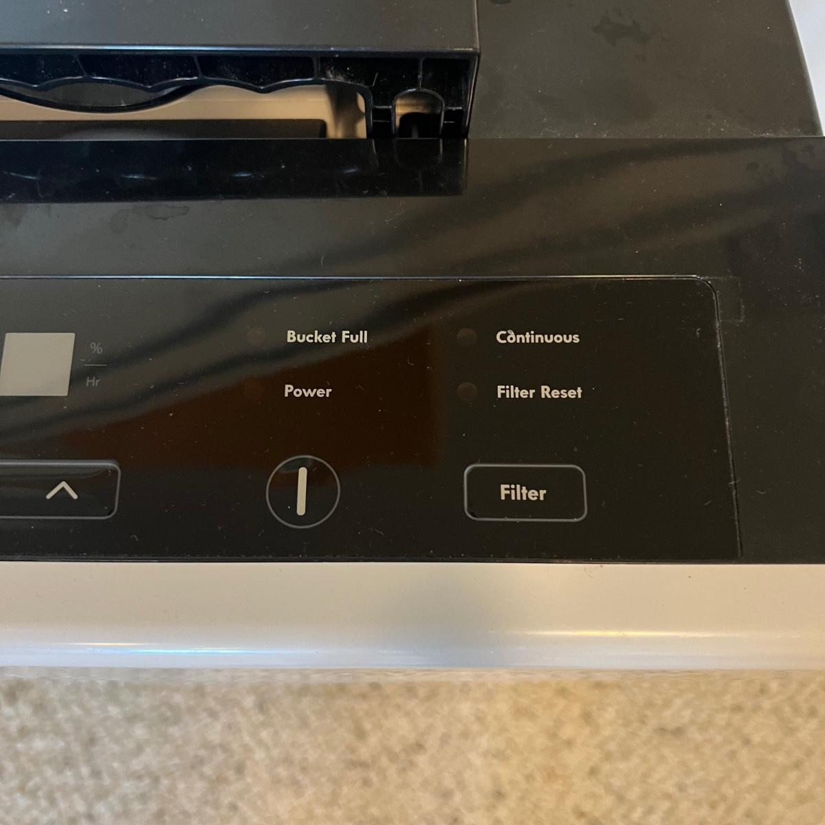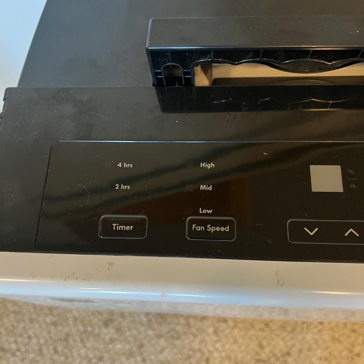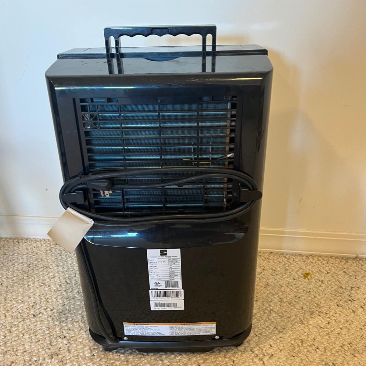 A 50 pint Kenmore dehumidifier measures 15” x 10.5” x 24”H. The item powers on went plugged in and pulls water. Local pick up only.