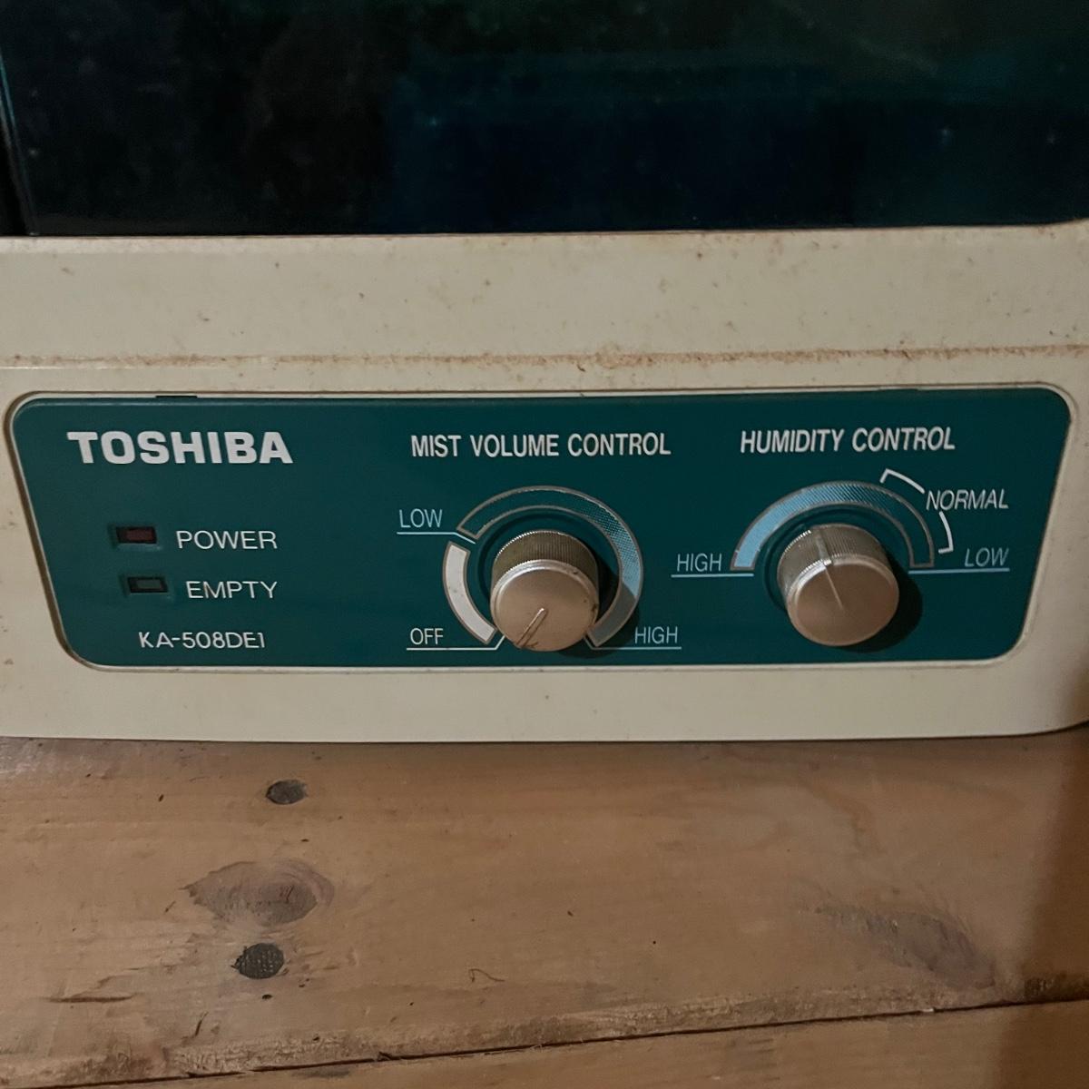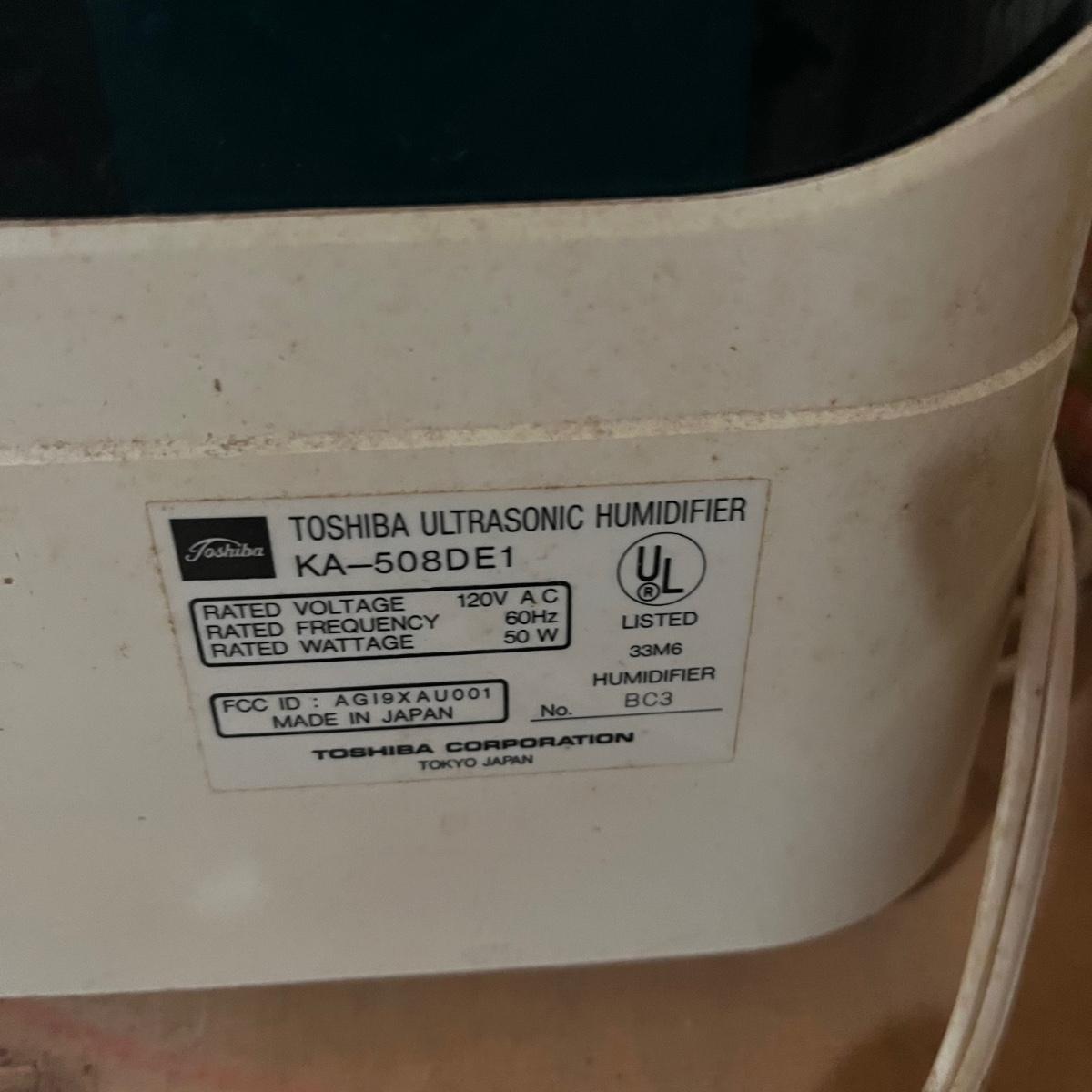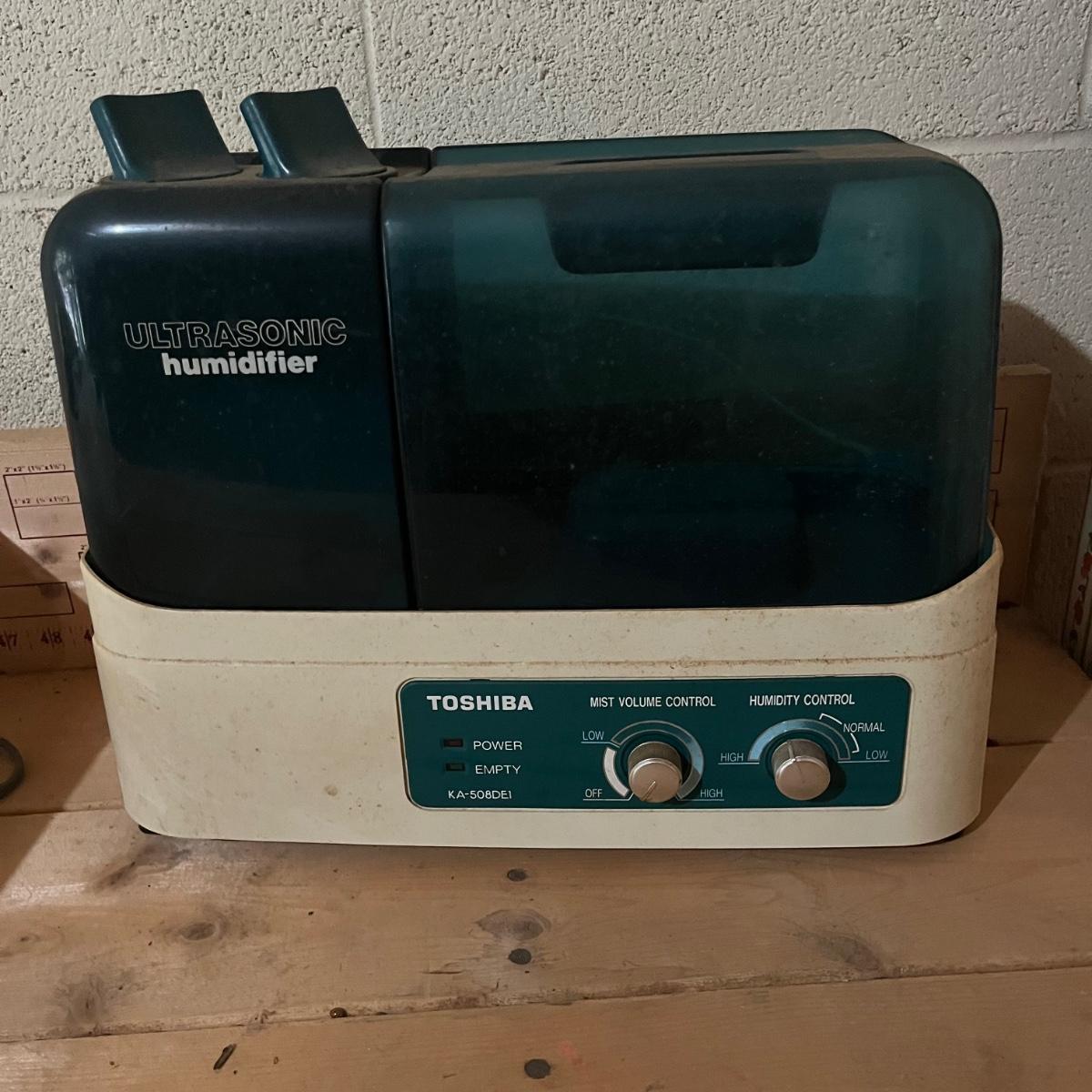 Lot includes a Kenmore Dehumidifier, Kaz steam vaporizer, Toshiba humidifier and a Hankscraft humidifier. All items powered on when tested. They are quite dusty and will need a good cleaning. Dehumidifier measures 15” x 19.5” x 20”.