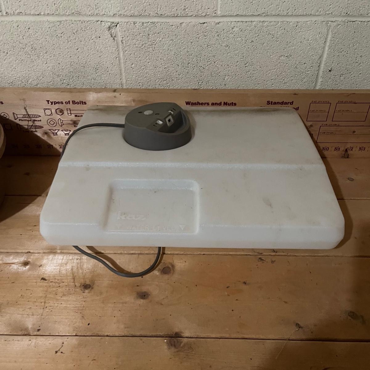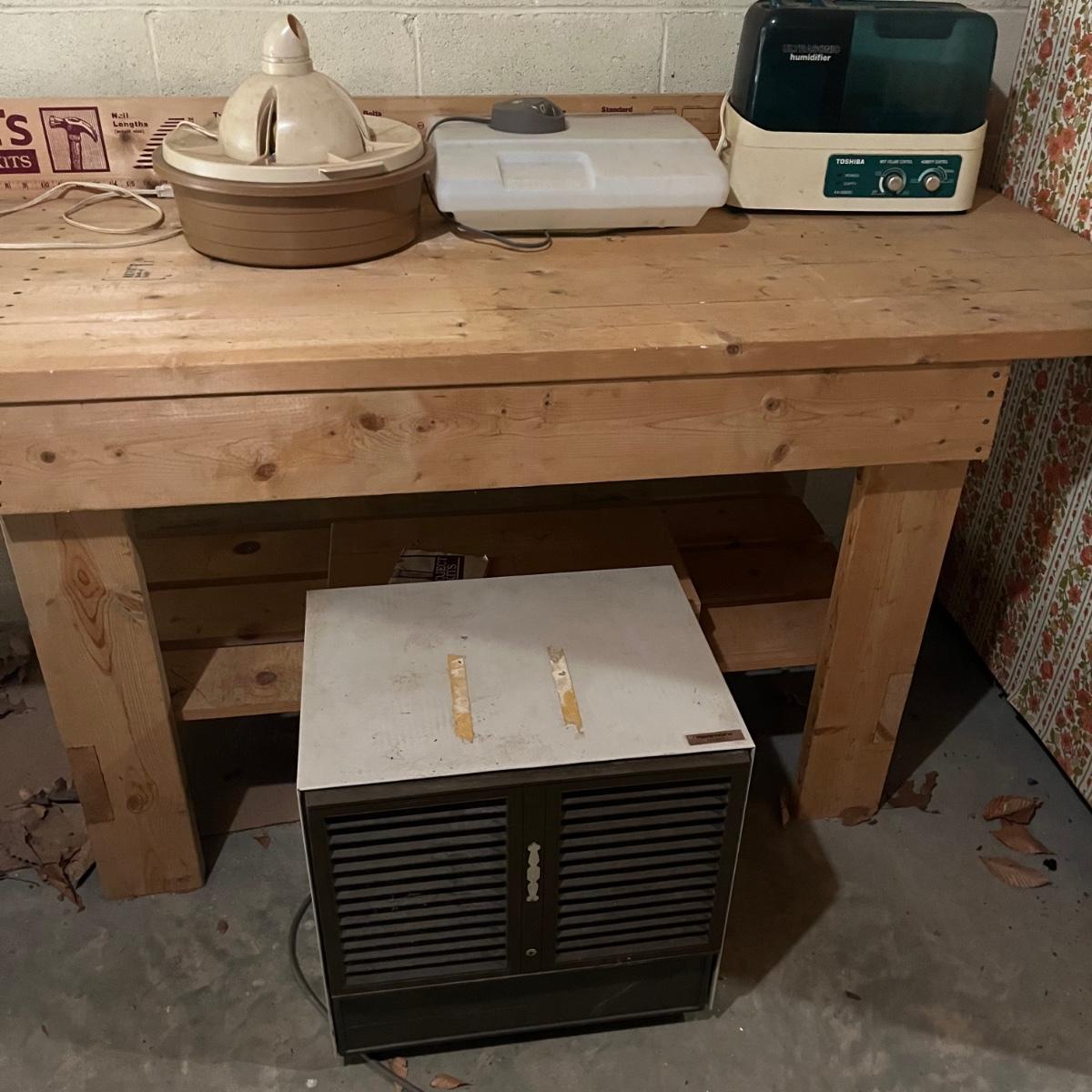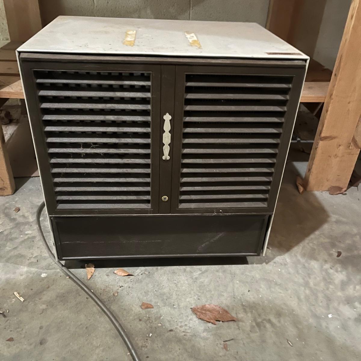 Lot includes a Kenmore Dehumidifier, Kaz steam vaporizer, Toshiba humidifier and a Hankscraft humidifier. All items powered on when tested. They are quite dusty and will need a good cleaning. Dehumidifier measures 15” x 19.5” x 20”.