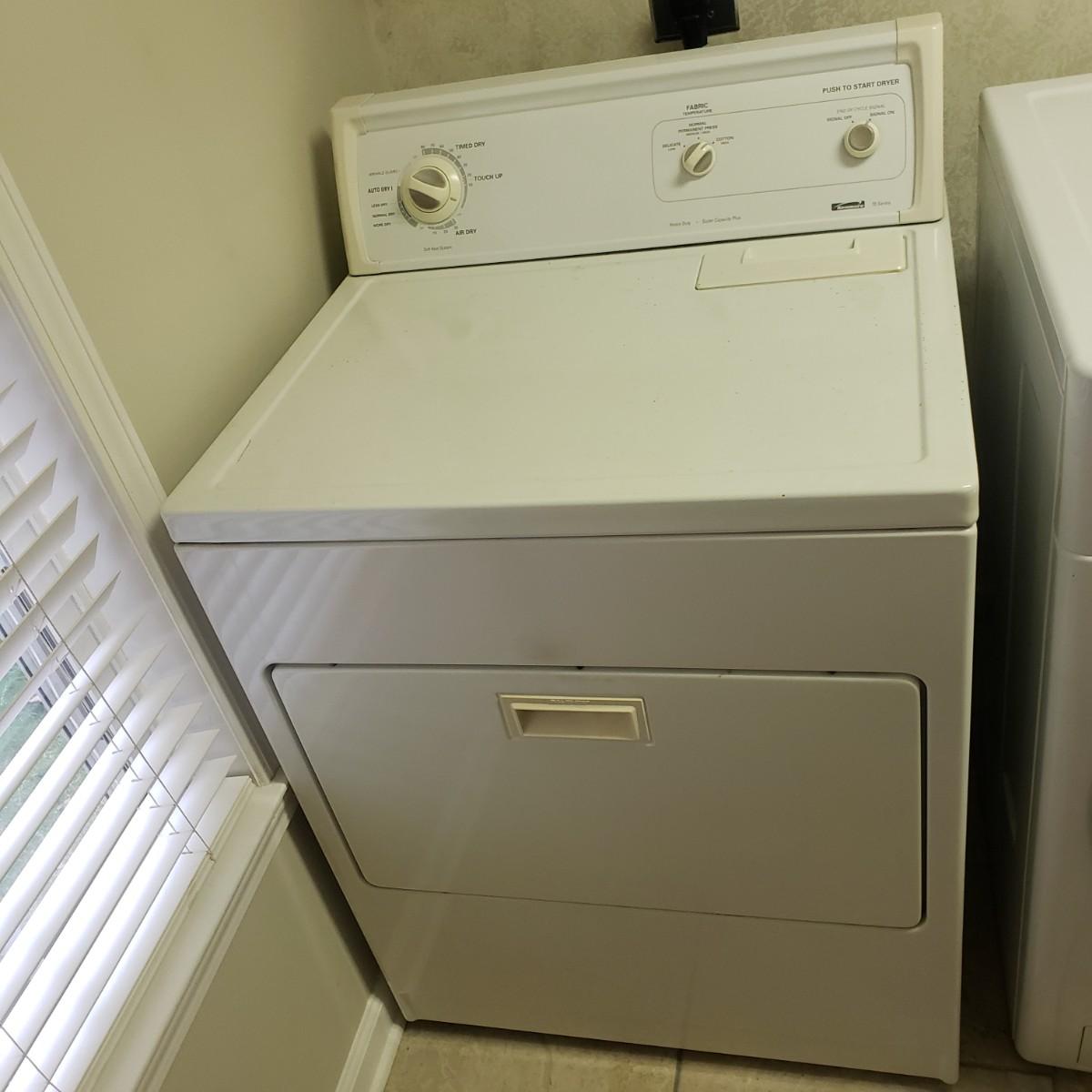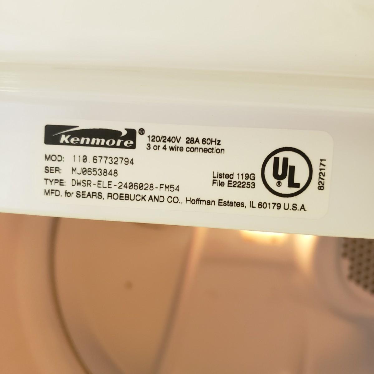 This Kenmore Dryer measures 29" x 26" x 46"H. This is a super capacity plus 70 series. The dryer powers on when plugged in.