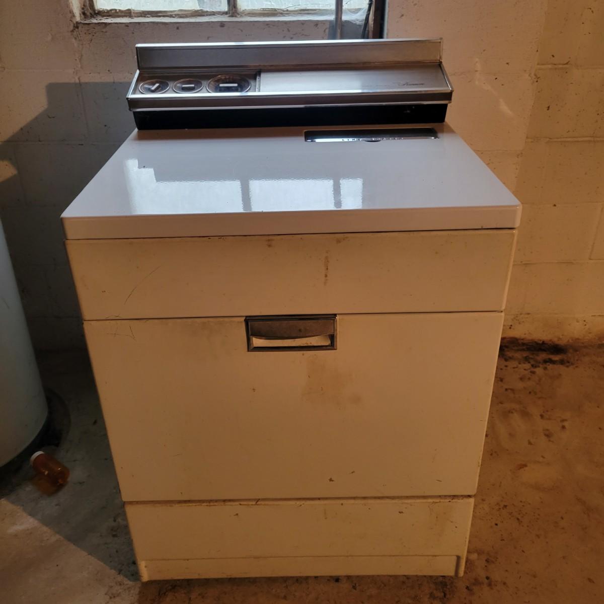 A Sears Kenmore Fabric Master clothes dryer in good condition with some superficial scratches and blemishes. Dryer was tested and works. This dryer features five temperature settings and three dryer settings. Measures approximately 29" x 26" x 42.5".