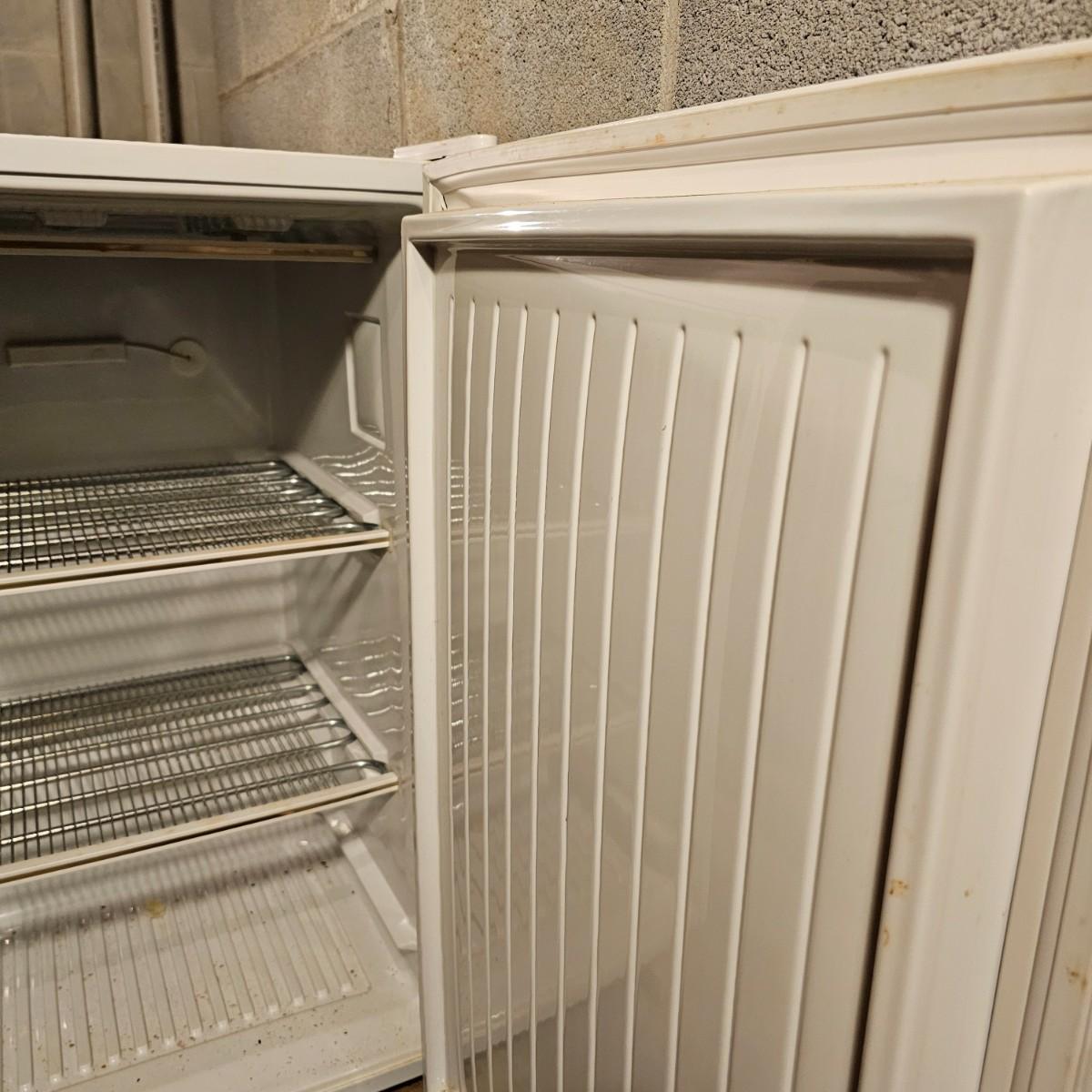 One small Kenmore five cubic freezer with two shelves and right-hand door. Unit is standard white, measures 21"W x 25.5"D x 33"H. Unit powered on when plugged in. Needs some cleaning. See photos for details. Local pickup only. Winning bidder must bring assistance to help move and load this item due to its weight and/or size.