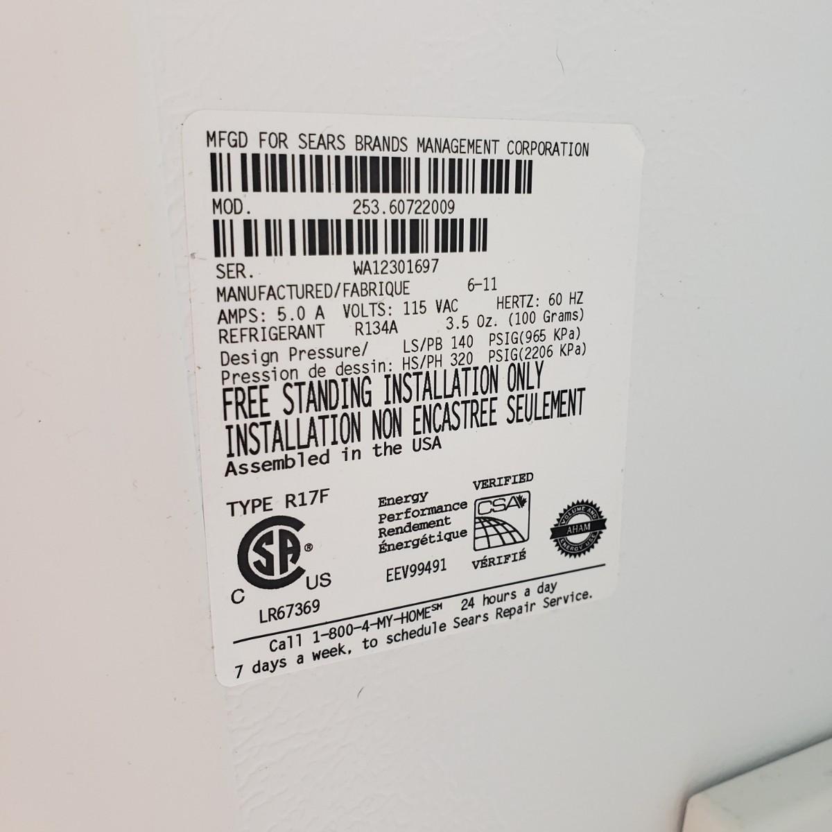 This is an upright Kenmore 16.7 cu ft freezer. It measures 32" x 29" x 66"H. Freezer powered on when plugged in. Freezer is in the garage with no steps. It needs a cleaning.