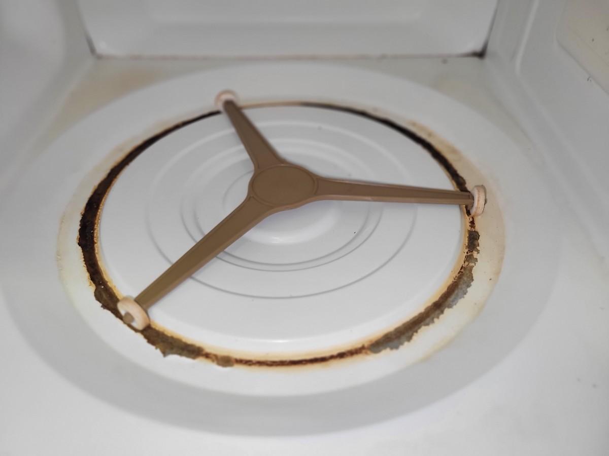 Stainless steel finish. It does show wear under the turntable. Works appropriately.
