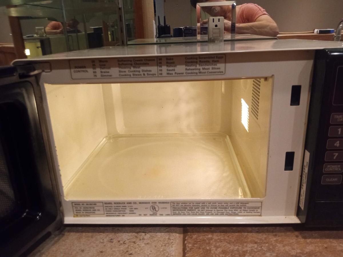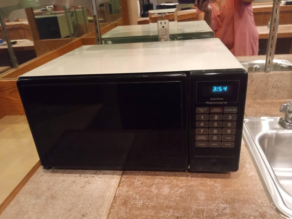 KENMORE MICROWAVE AND LIDDED KITCHEN WASTE CAN