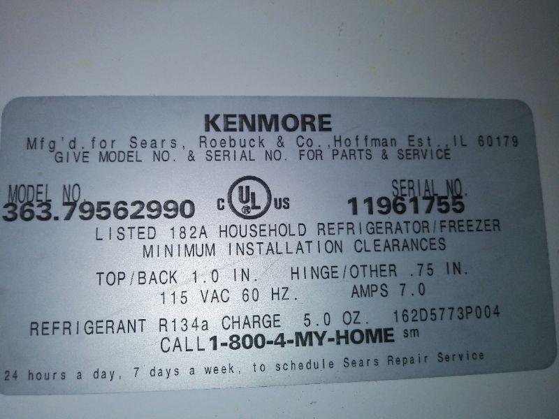 LOT 170 KENMORE REFRIGERATOR