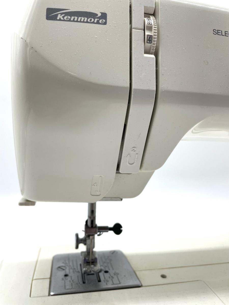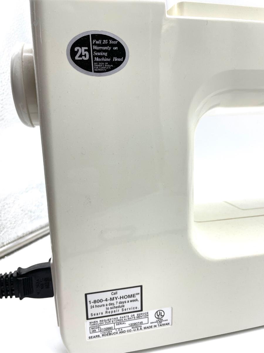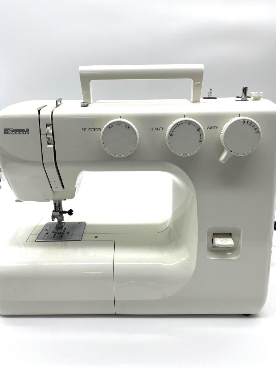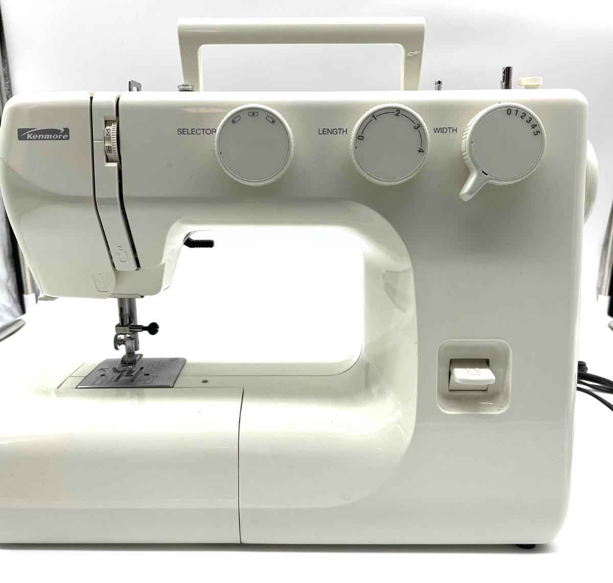 Sears KENMORE Sewing Machine with pedal Measures 12 inches tall, 15 inches long and 12 inches wide.
