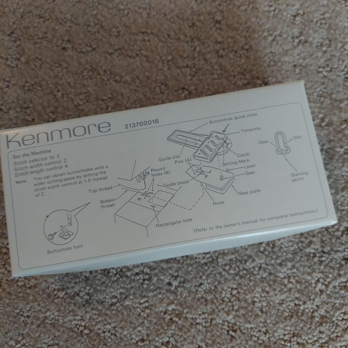 Kenmore sewing machine in box with manual that powered on when plugged in. Also included are many sewing tools and accessories. Please see photos for inventory. Local Pickup Only.