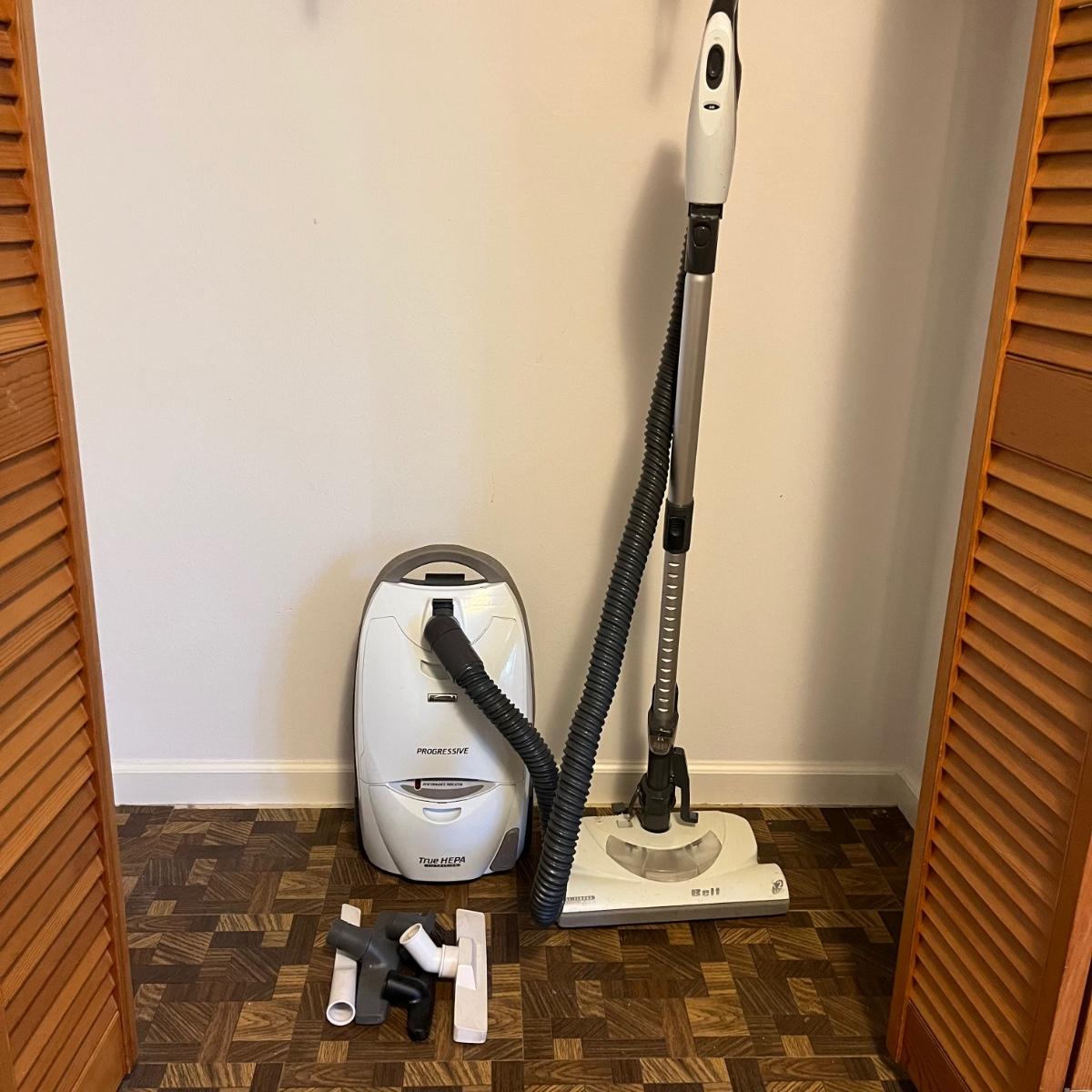 Lot includes a Kenmore True Hepa canister vacuum that worked when tested. Also includes attachments.