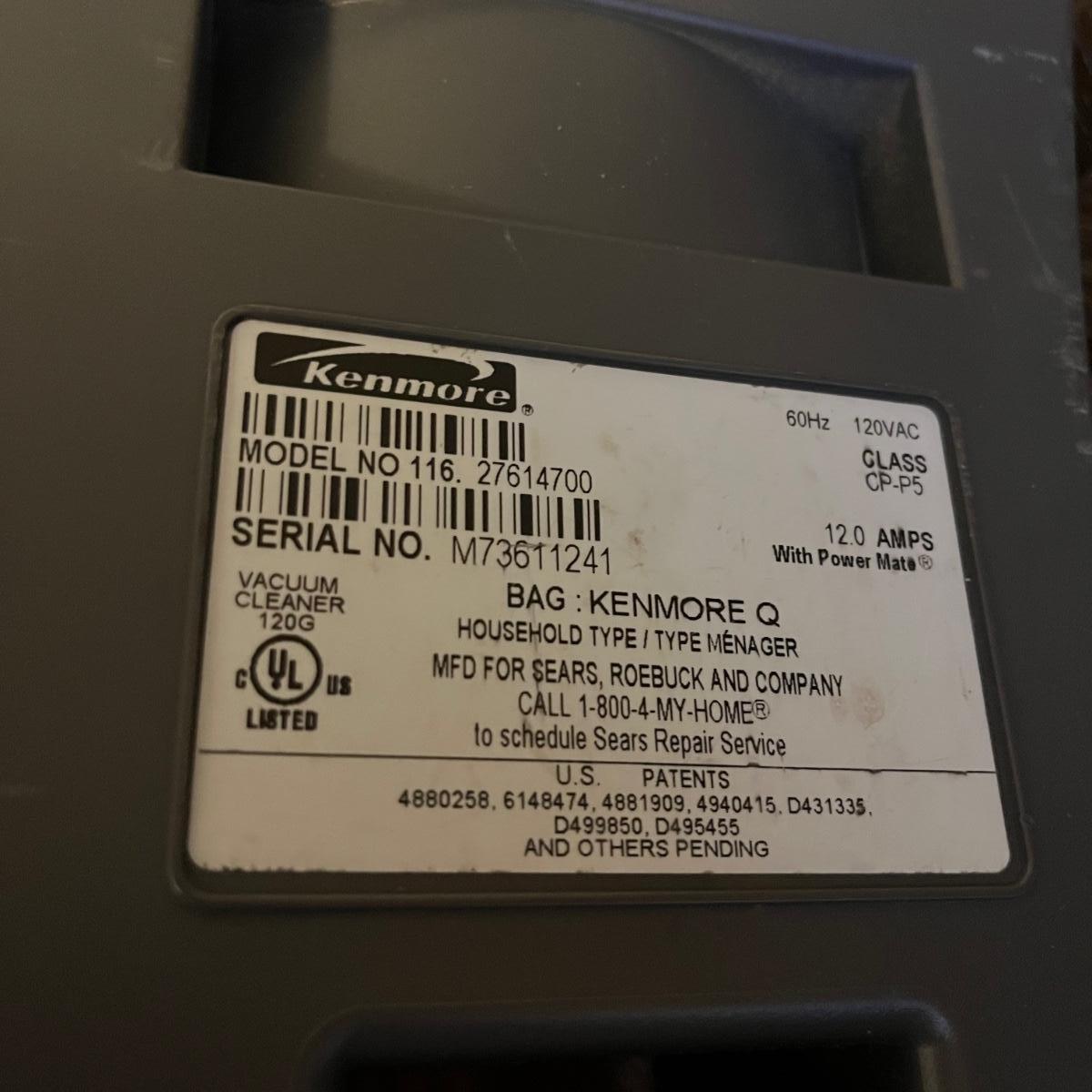 Vacuum is model# 116.27614700.