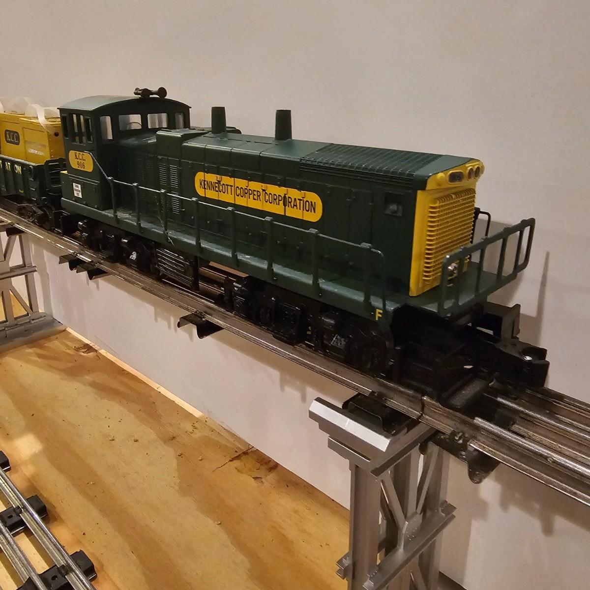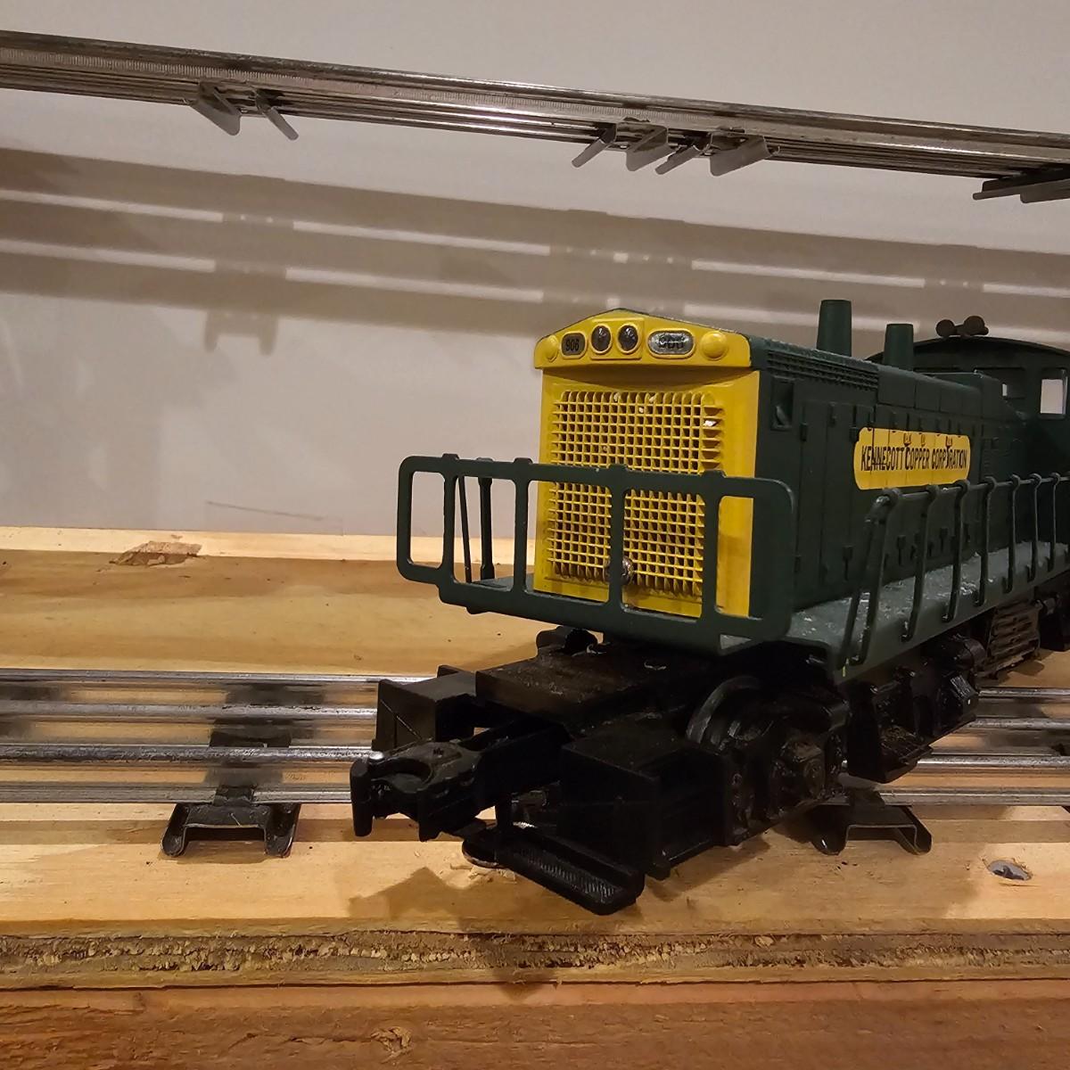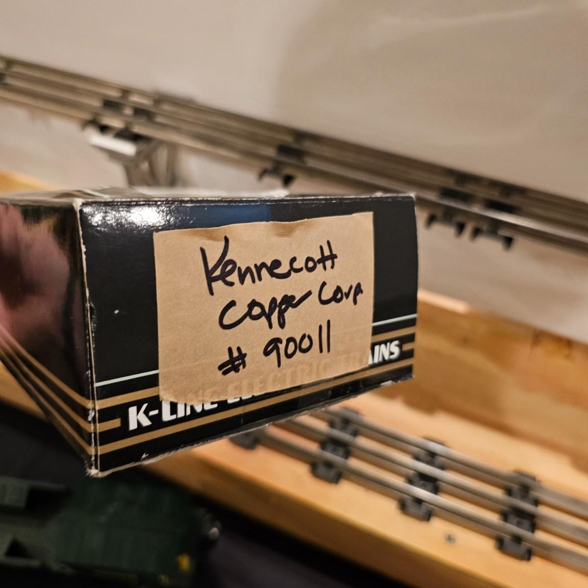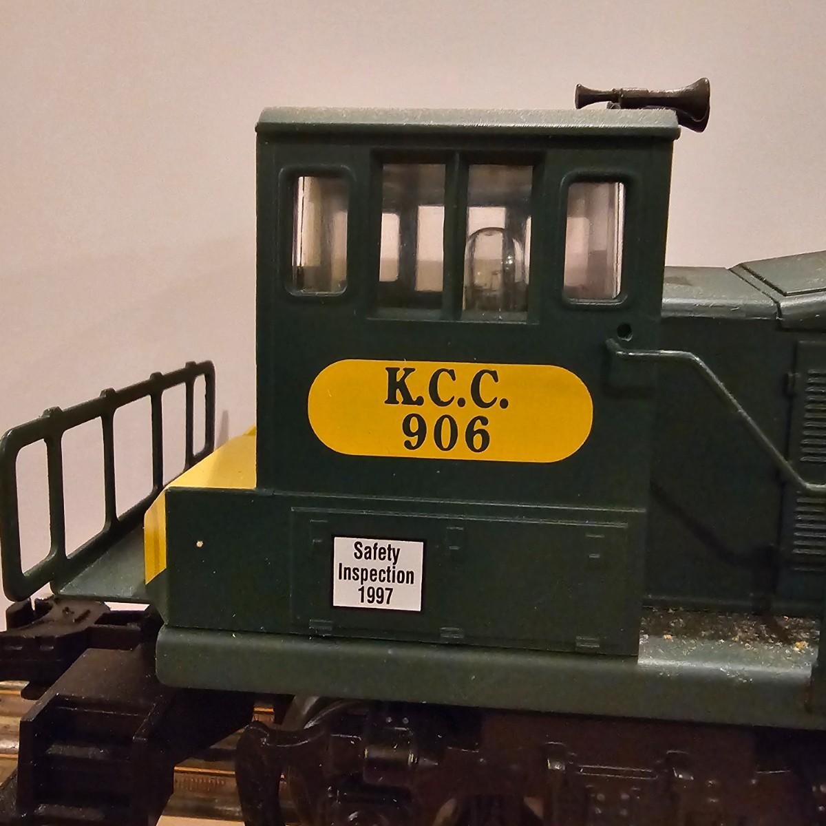 Four piece set by K-Line of the Kennecot Copper Corp. line. One MP 15 diesel switcher with dual motors and 8 wheel drive. One gondola with crates and lifting straps. Two MOW cars with searchlights. Engine measures 12" long. Items untested. Three in original boxes and one not. O gauge. See photos for details. Shipping available. Please note that any price tag seen on an item was not put there by Sterling Transitions and does not reflect the current value of the item.
