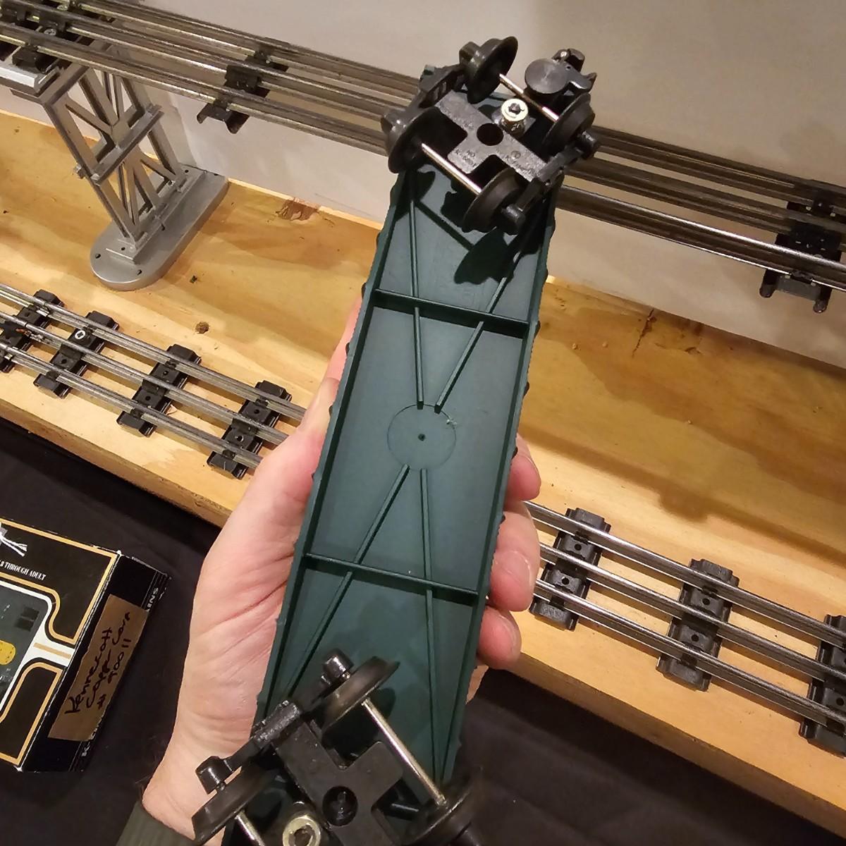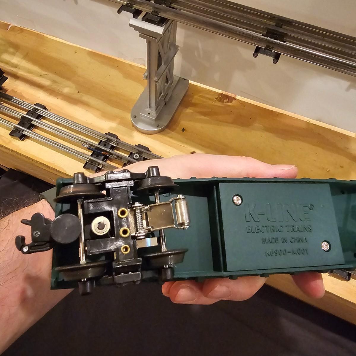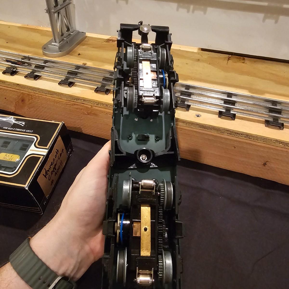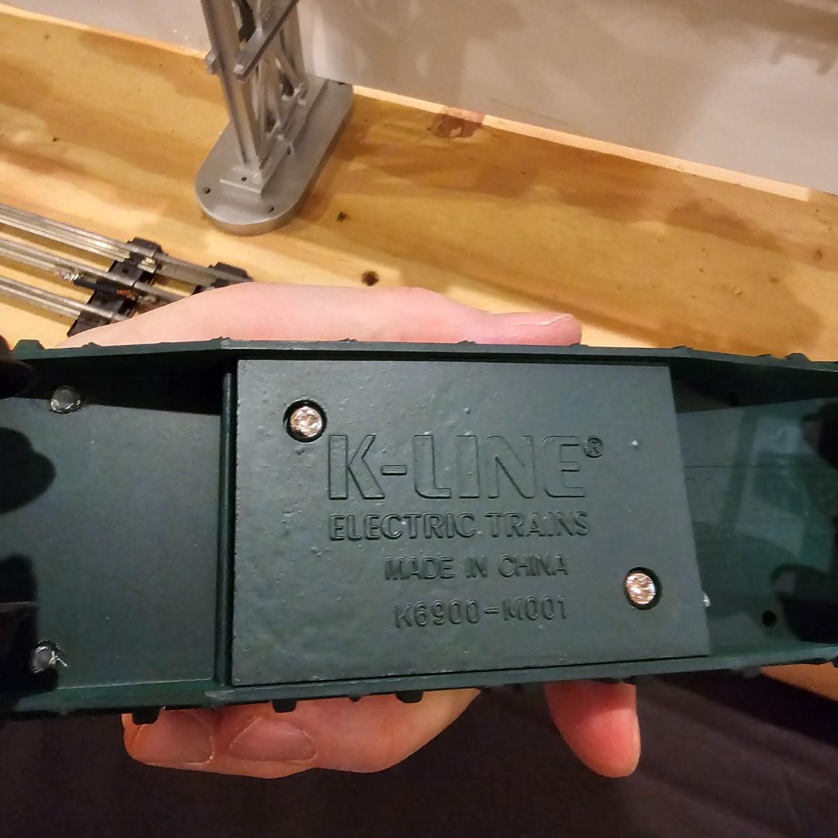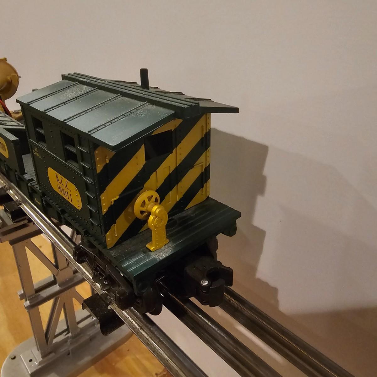 Four piece set by K-Line of the Kennecot Copper Corp. line. One MP 15 diesel switcher with dual motors and 8 wheel drive. One gondola with crates and lifting straps. Two MOW cars with searchlights. Engine measures 12" long. Items untested. Three in original boxes and one not. O gauge. See photos for details. Shipping available. Please note that any price tag seen on an item was not put there by Sterling Transitions and does not reflect the current value of the item.