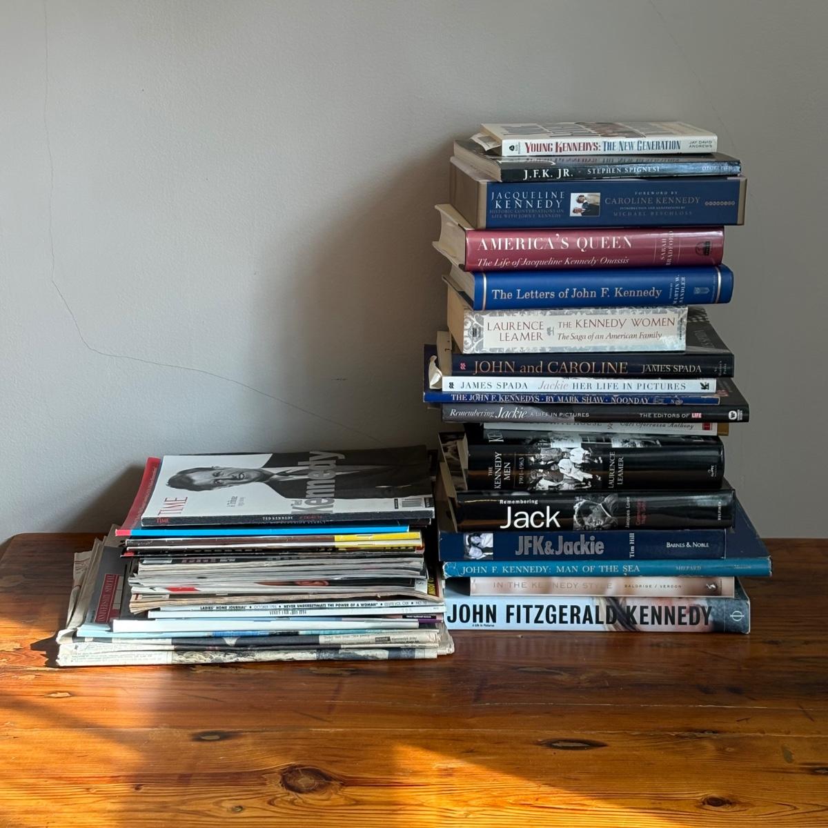 This lot is a collection of books, magazines, and newspaper clippings about the Kennedy family and its members. Notably, there are several different newspaper clippings that report on the tragic death of JFK Jr. & Caroline Basset Kennedy. See pictures for more