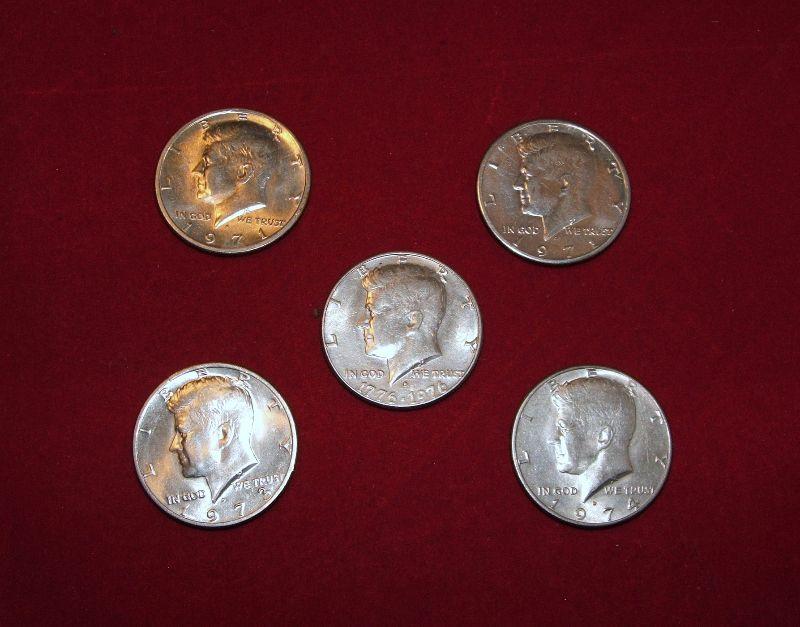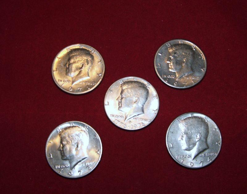 2 - 1971 D 1 - 1973 D 1 - 1974 D - 1 - 1776 - 1976 D All coins have a D mint mark. Nice circulated condition, having been in storage.
