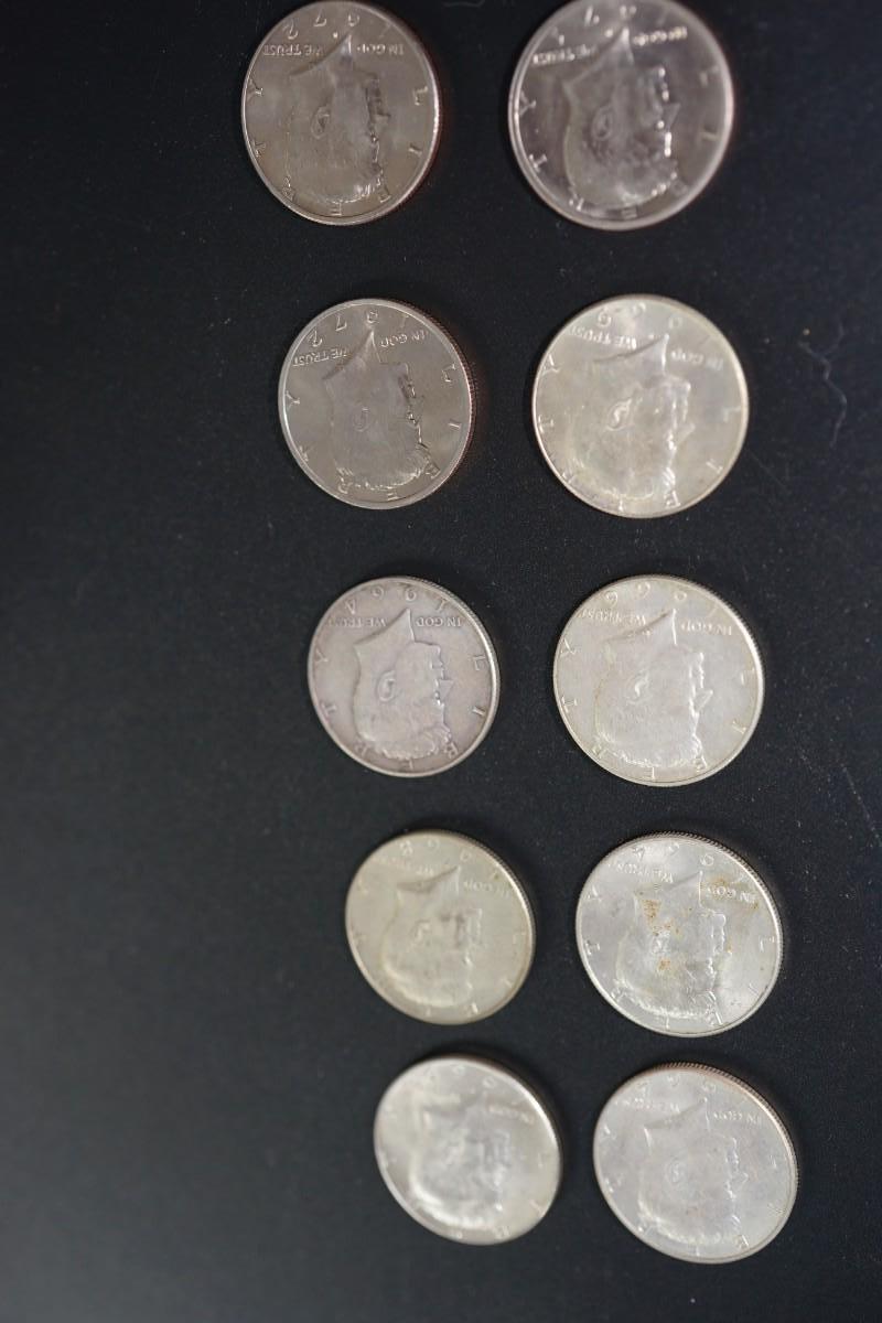 total of 10 Kennedy half dollars.