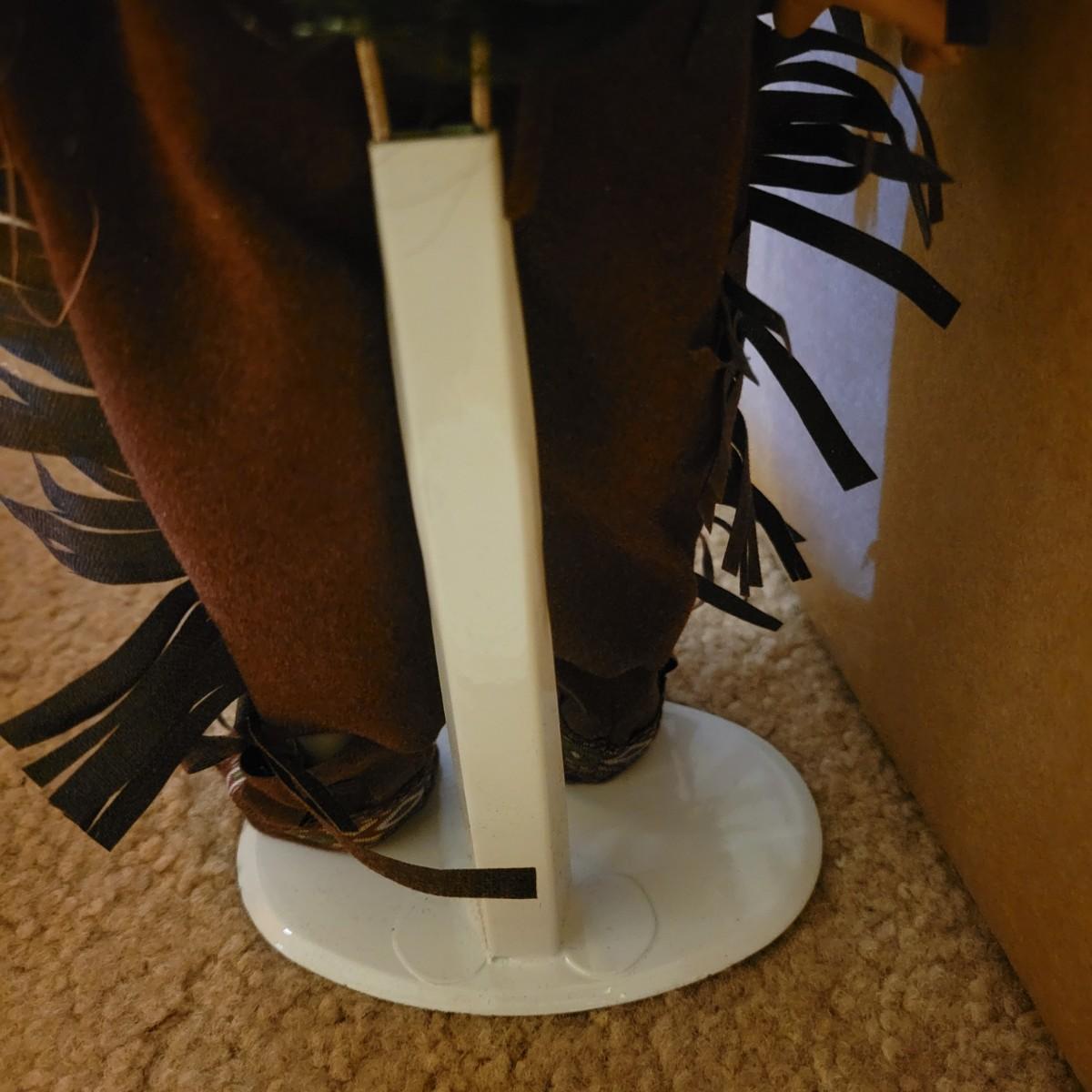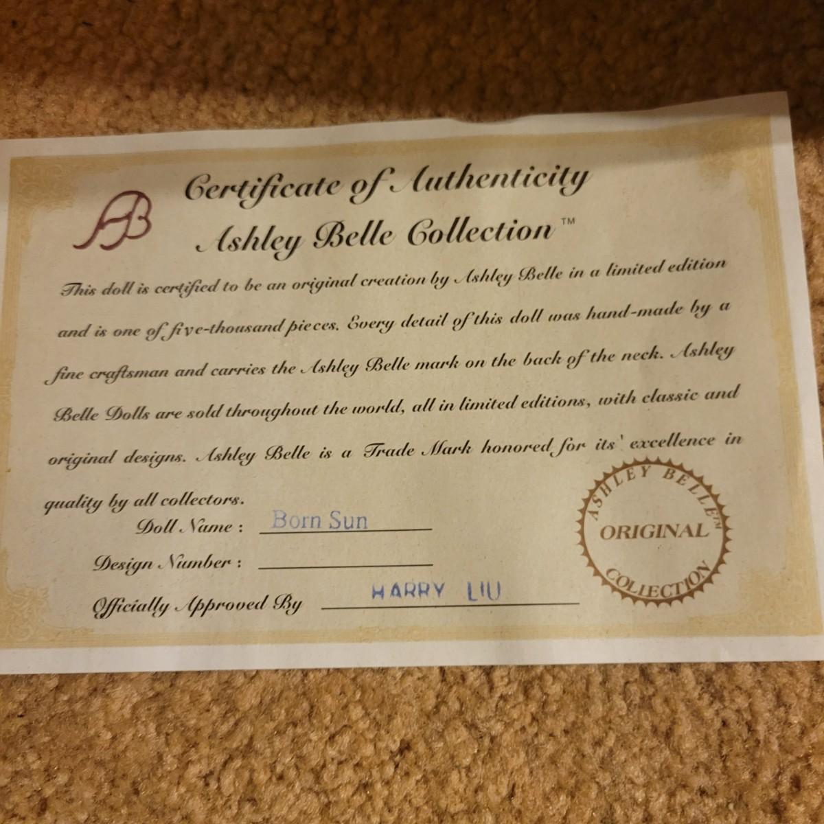 Two Vintage Ernest pull string talking dolls in the original box. Ernest spoke when prompted, but voice box was tired sounding and probably not as good as when it was new. We make no guarantees of speaking abilities moving forward. Lot also features a Six Million Dollar man action figure with its accessory and Born Sun by Ashley Belle with box and stand. The Six Million Dollar Man is a 12" doll. Its rotating arm feature has been repaired. The Ernest box is 19"H. Shipping available.