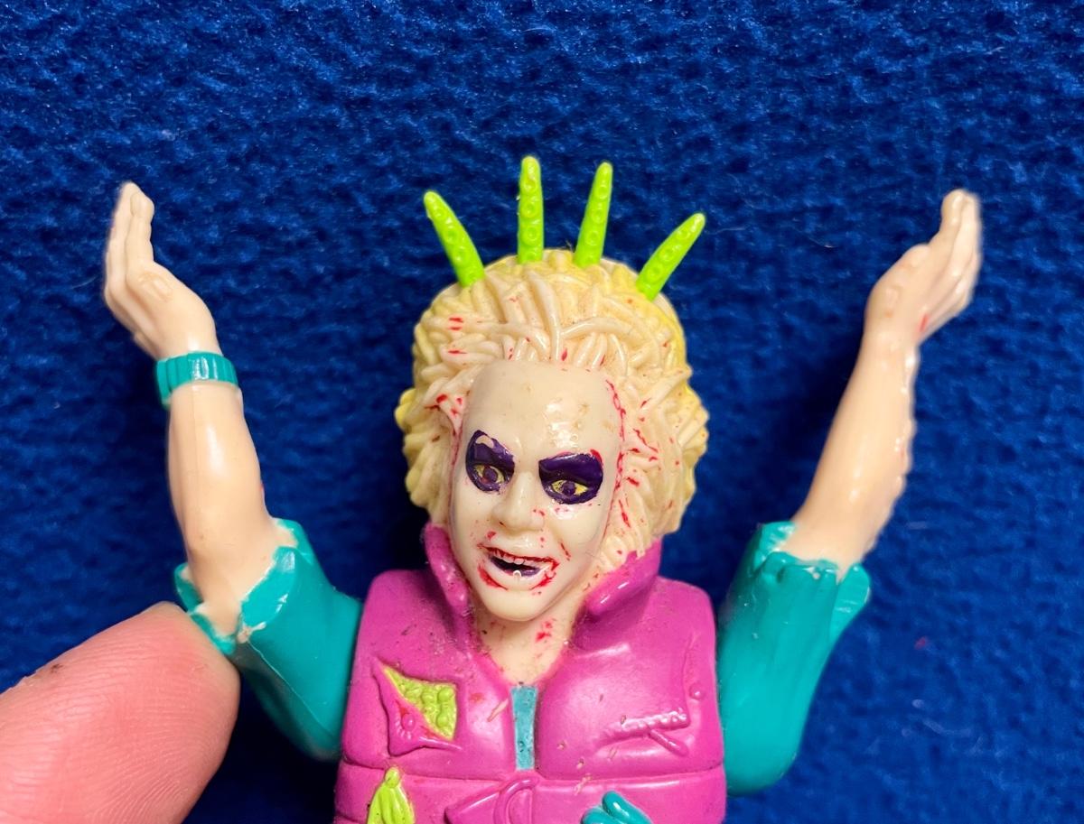 Betlejuice action figure. Green tentacles pop out of head when arms are raised.
