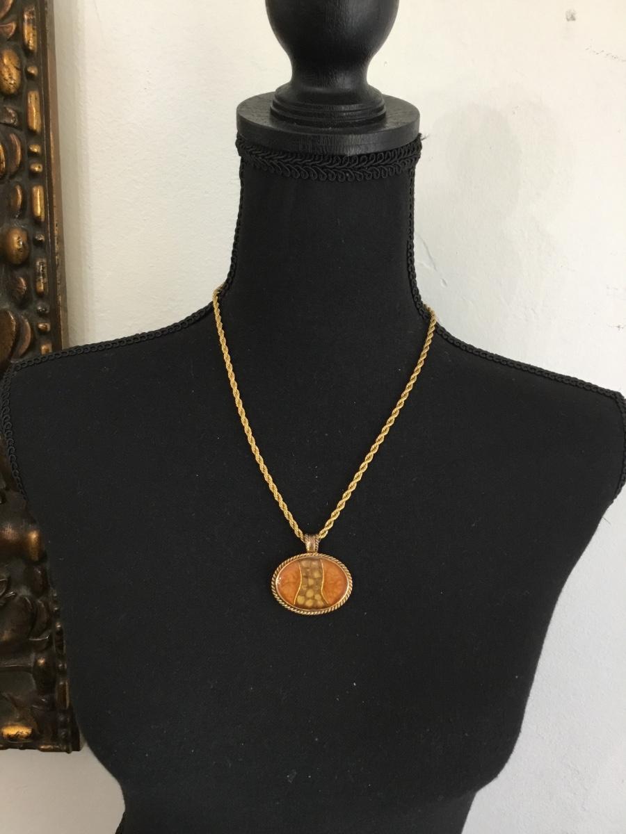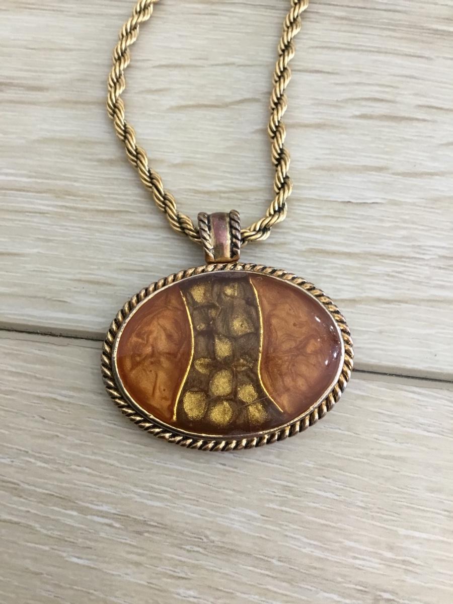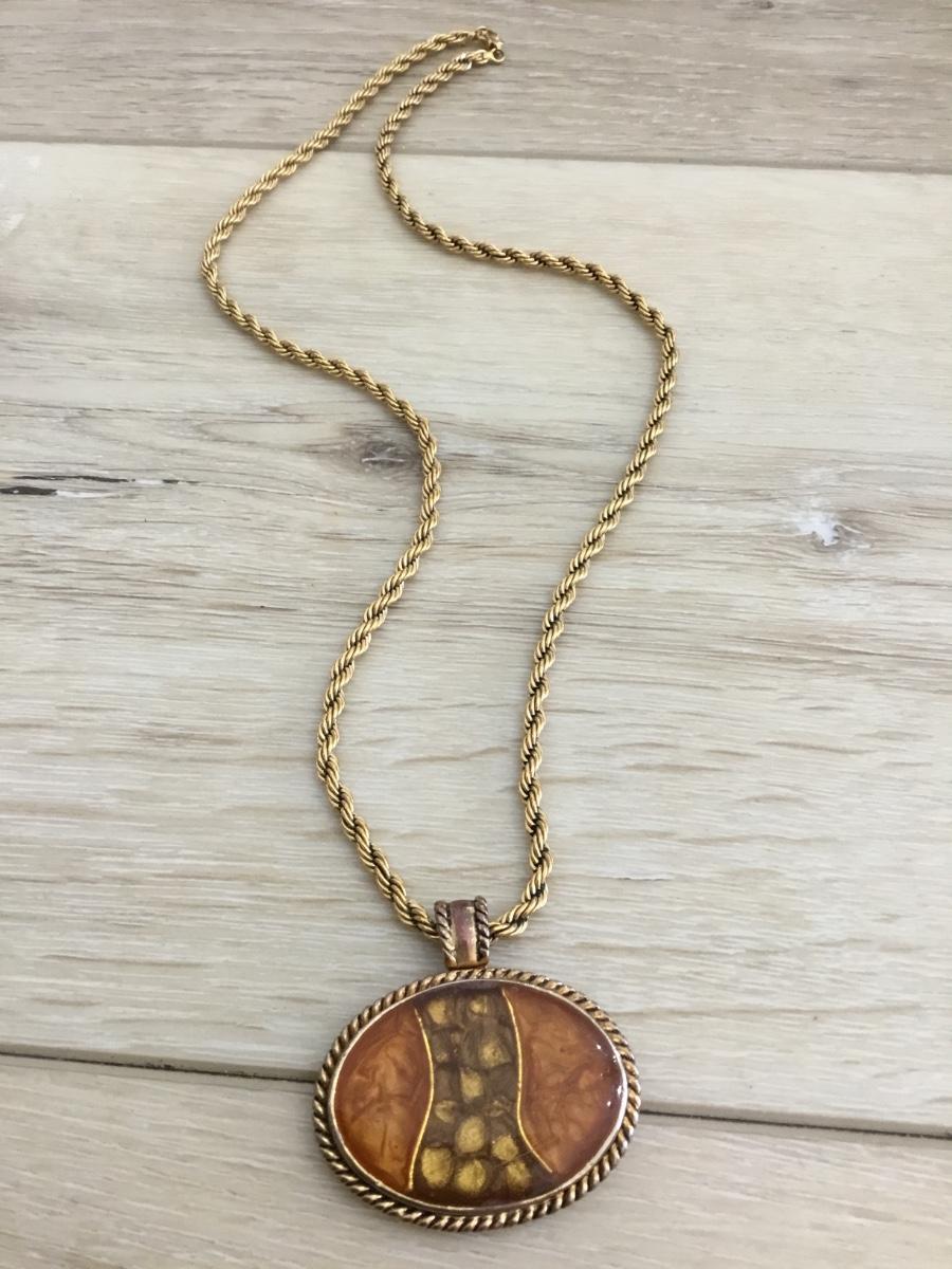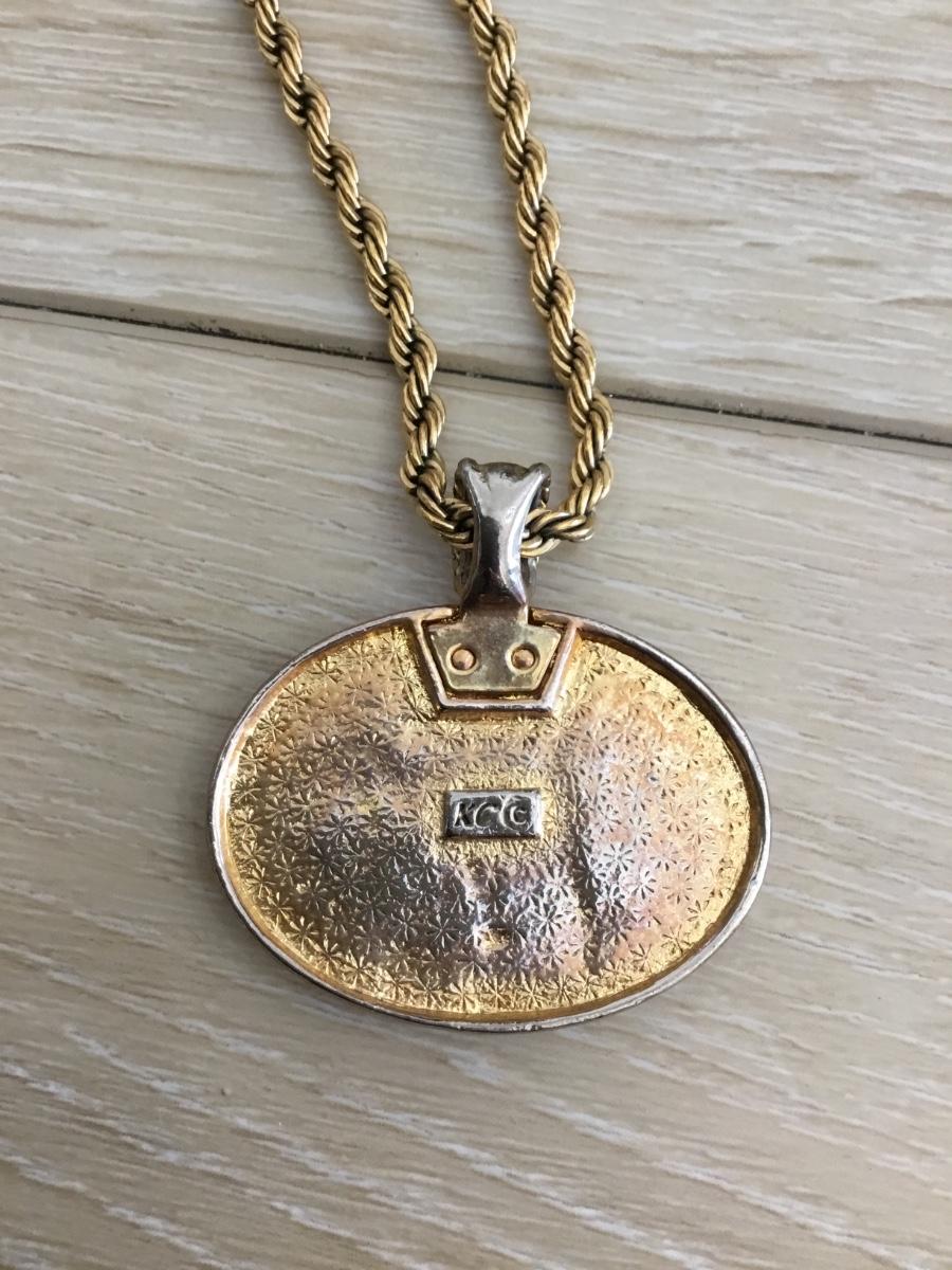 Kenneth Cole enamel pendant with gold tone, thick, heavy, braided chain necklace