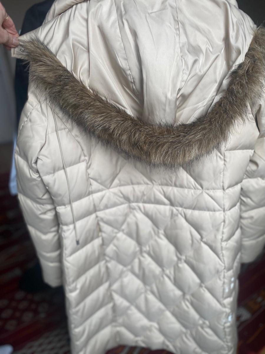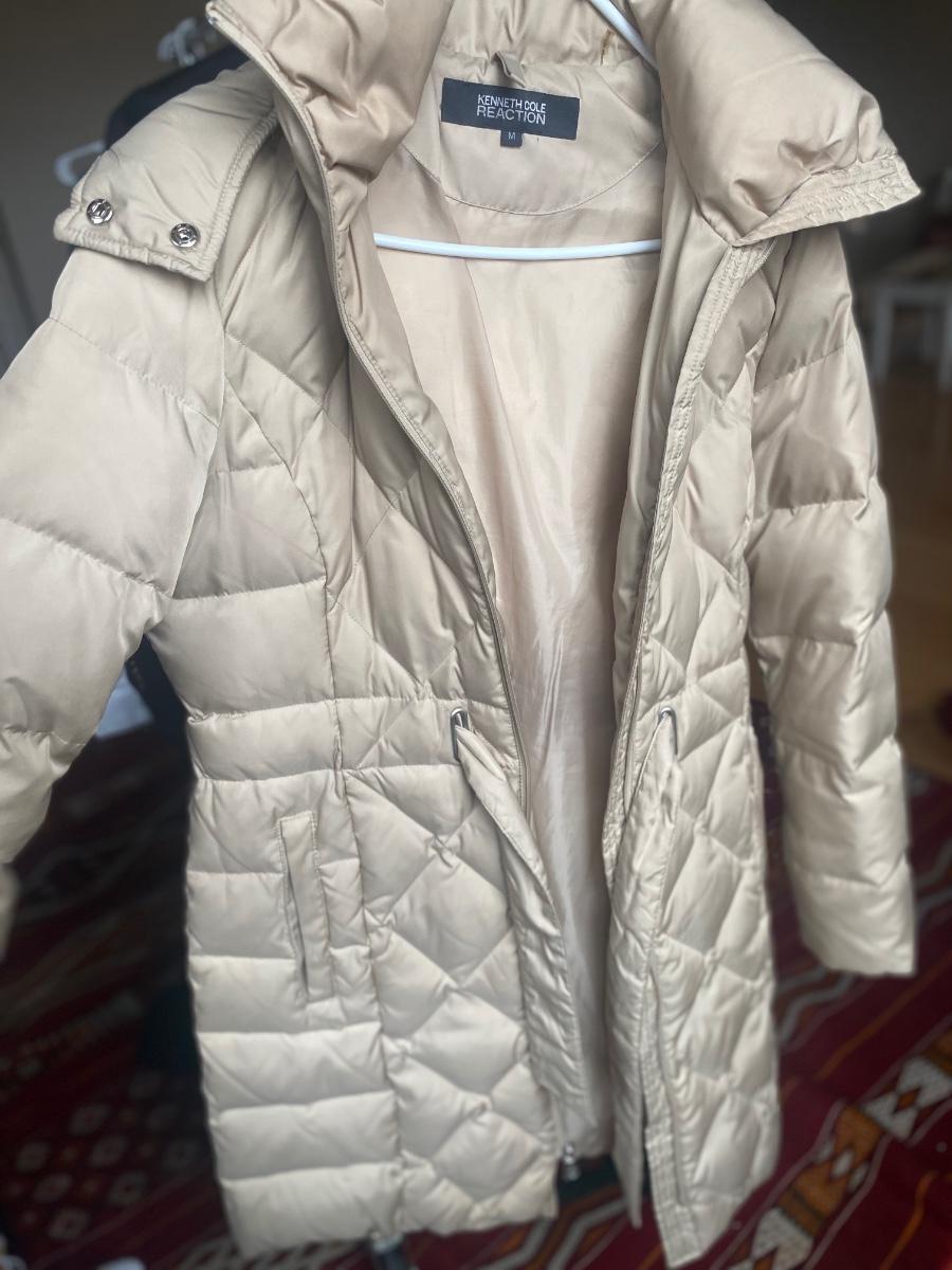 Kenneth Cole Reaction down jacket with fur hood and belt
