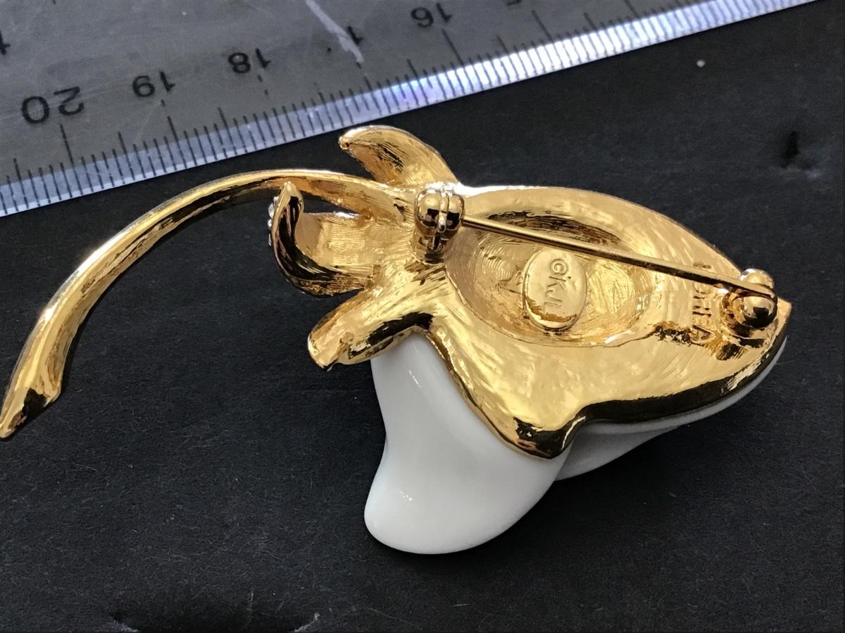 Kenneth J Lane Vintage Lucite Rhinestone White Rose Brooch