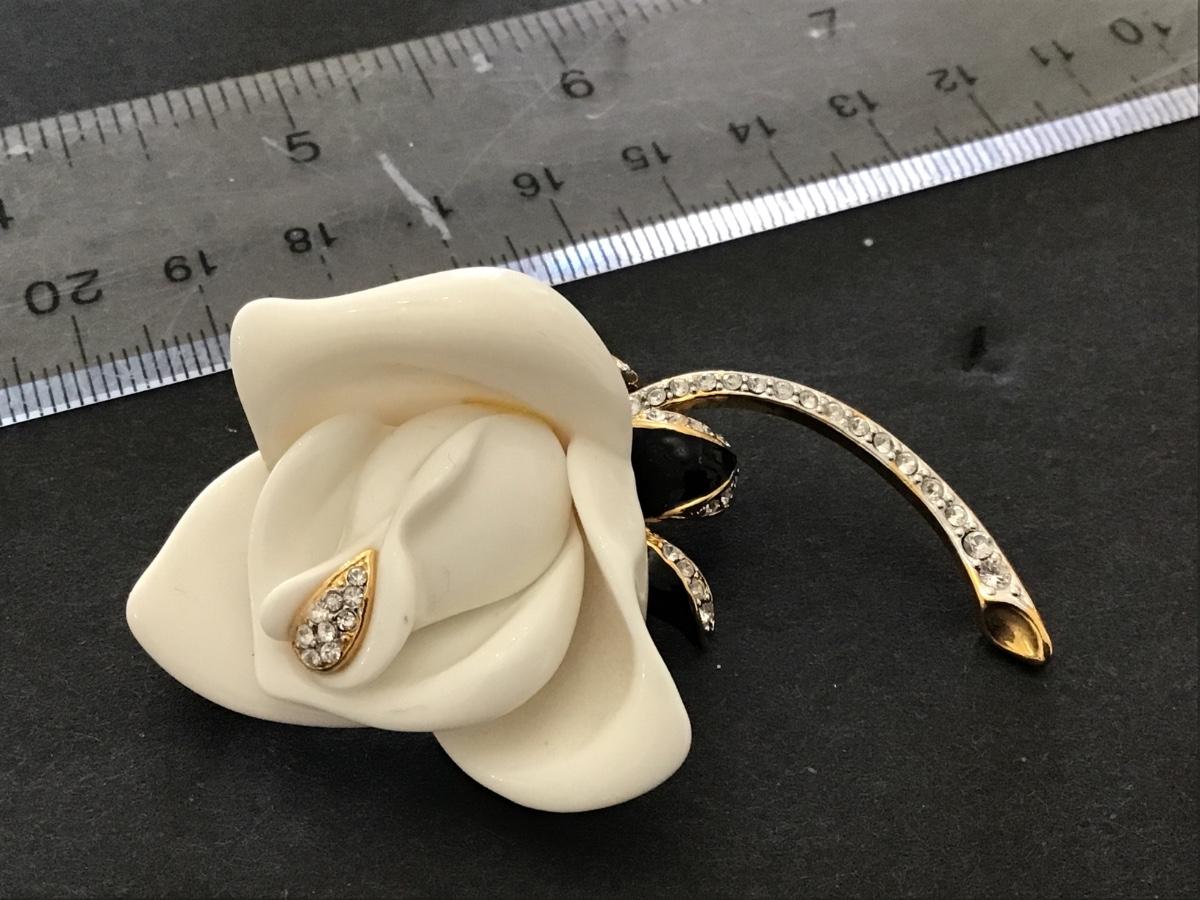 Kenneth J Lane Vintage Lucite Rhinestone White Rose Brooch