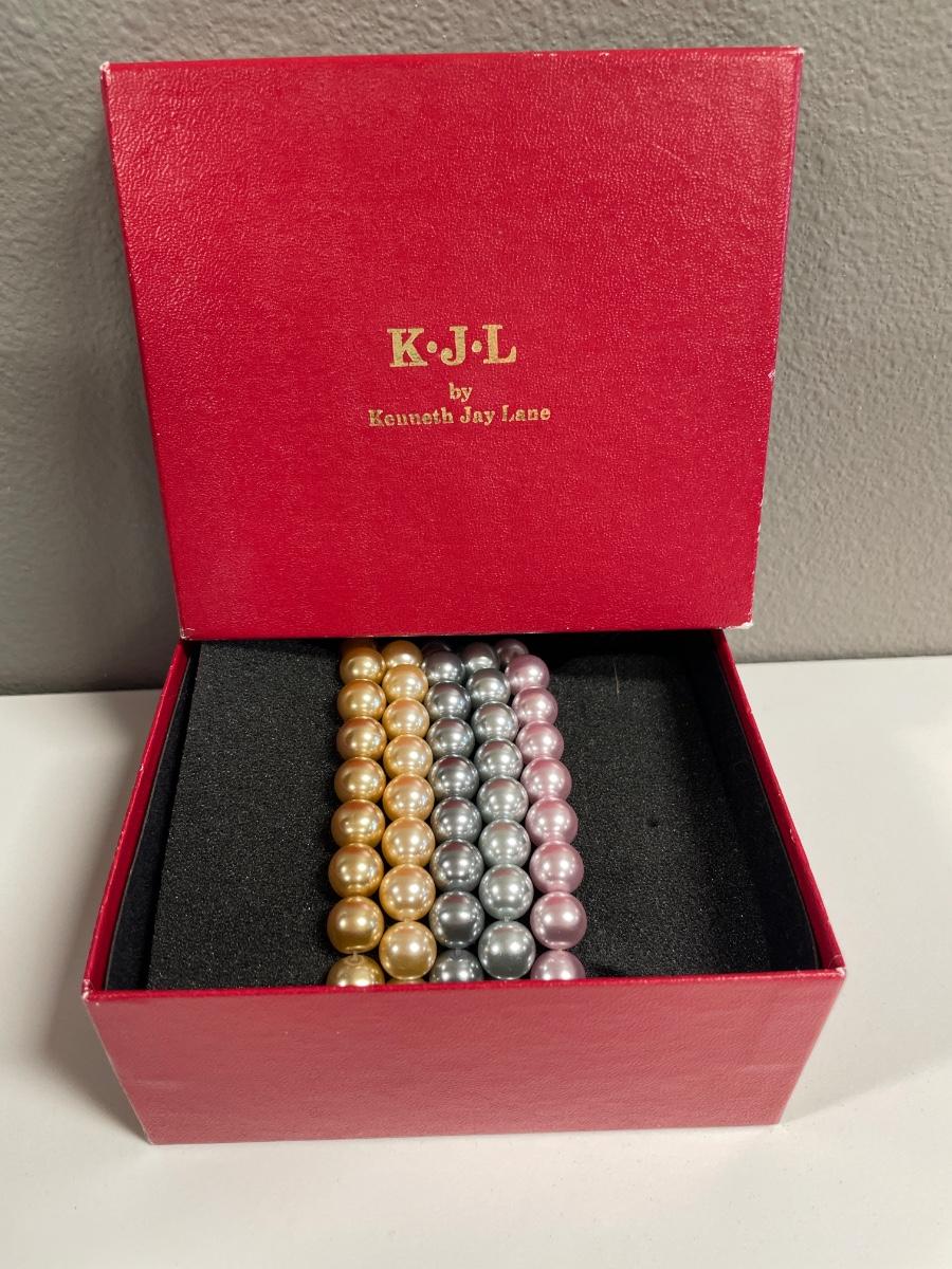 Kenneth Jay Lane 5 complimentary color bracelet set in box with original paper work