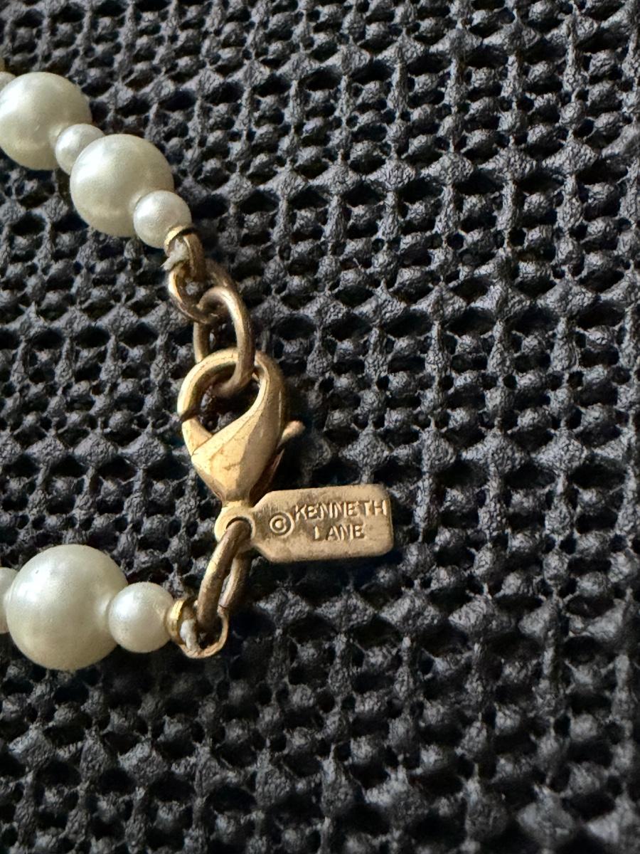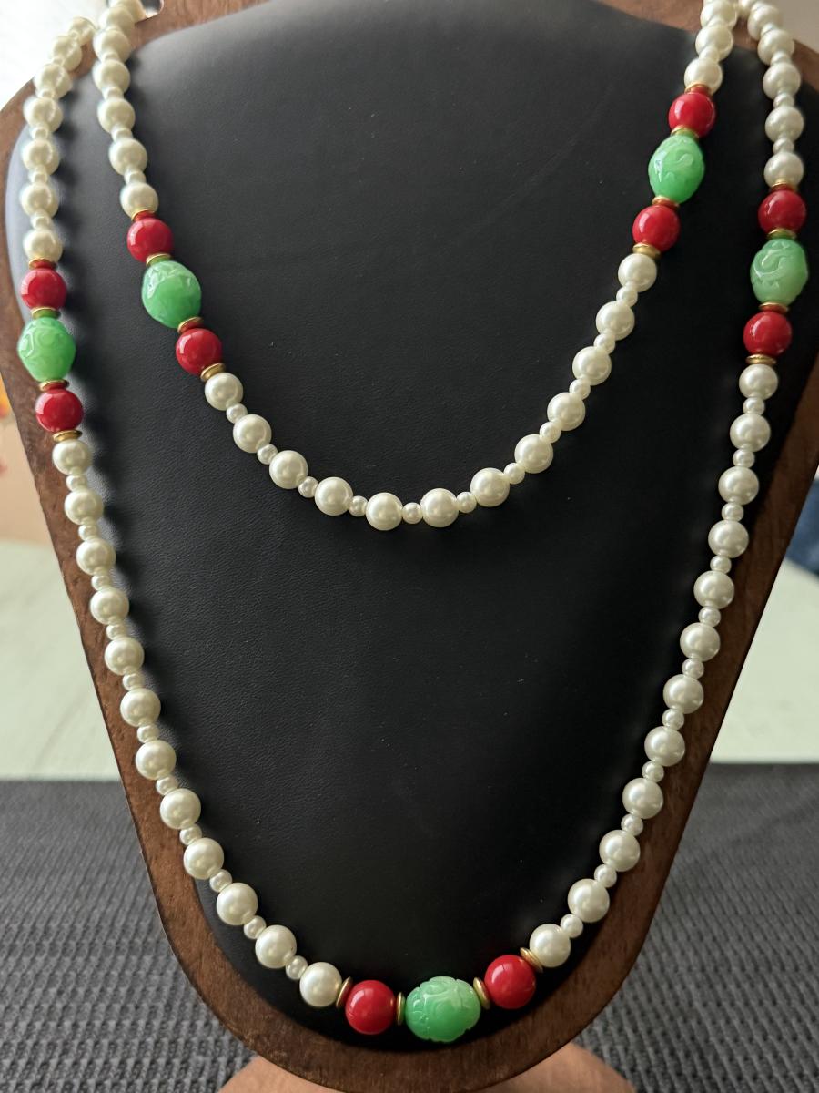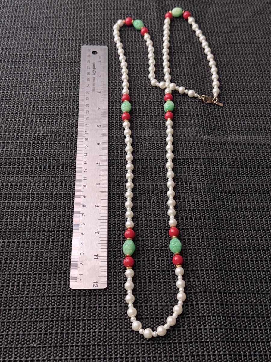 Kenneth lane vintage pearl red and green accent long necklace