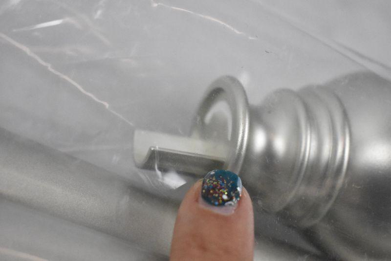 Kenney Layla 1" Value Decorative Window Curtain Rod, 30-84", Satin Silver. 1 finial is broken where it connects inside the rod. Easily glued/hidden