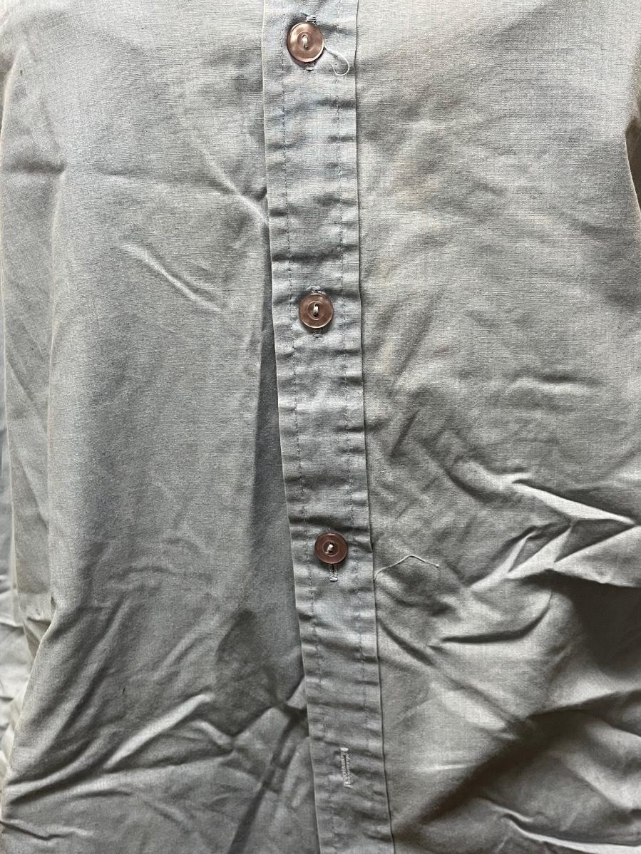 The button up is in good condition. It is missing one button at the bottom of the shirt. It doesn’t come with tags but seems to fit a size medium. The item is wrinkled in the pictures due to being folded.