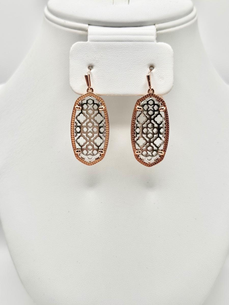 KENDRA SCOTT ~ Silver Filigree & Rose Gold Trim E/R