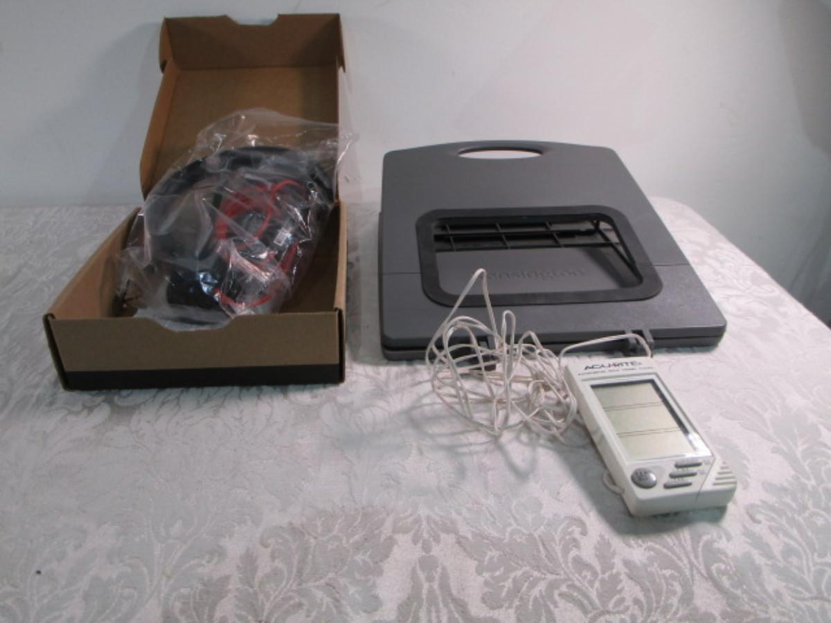 Kensington laptop cooling stand, new Poly black wire 3310 headset, like new Hygrometer
