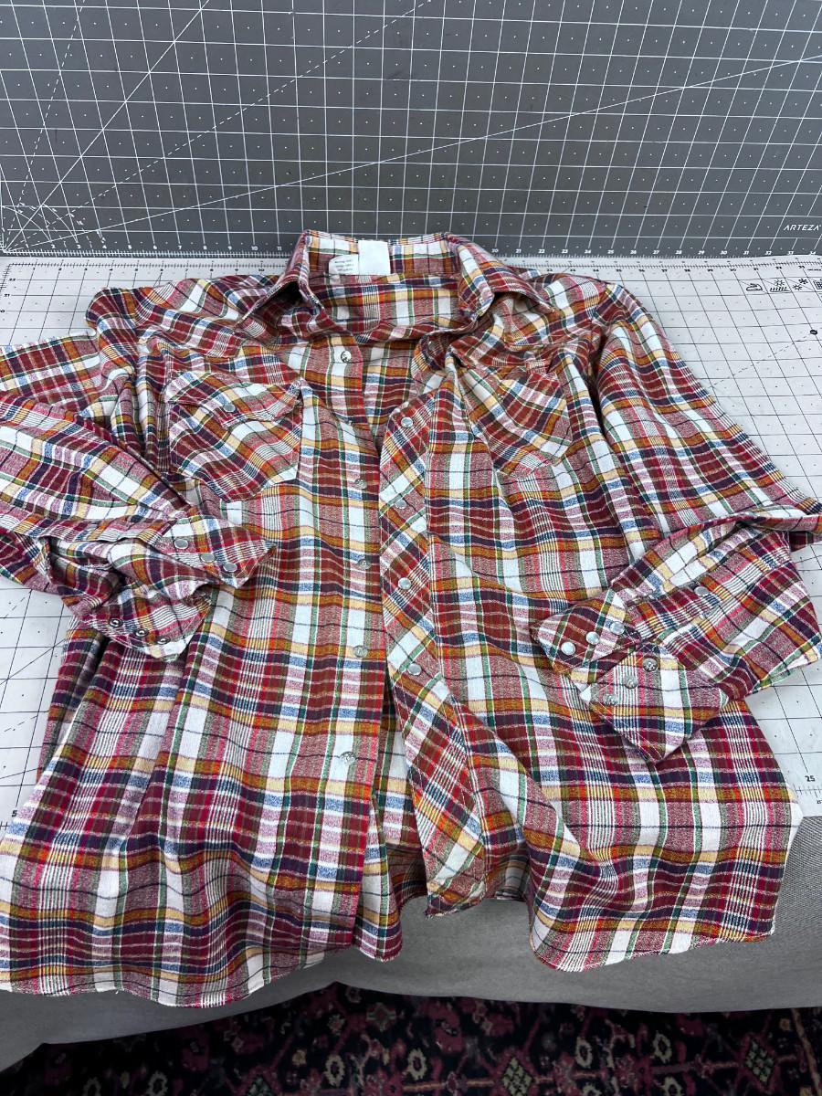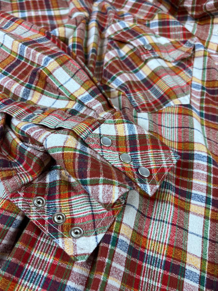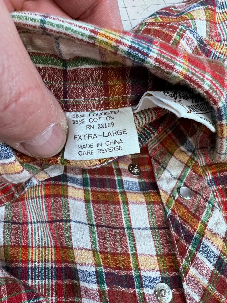Size XL Runs Small Like a Large. Red Rust Plaid Western Style Shirt