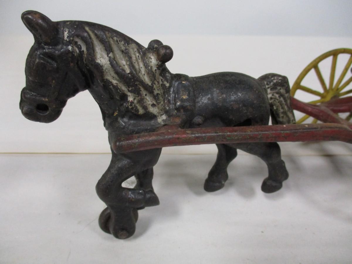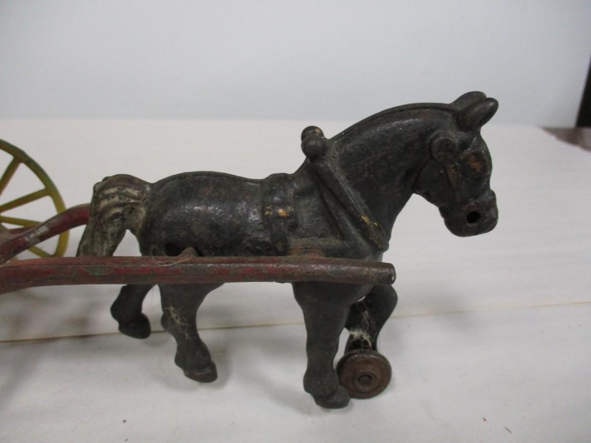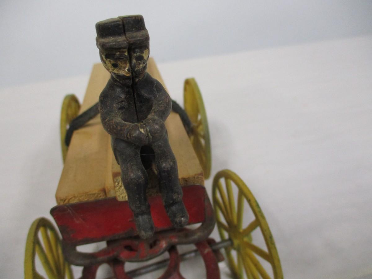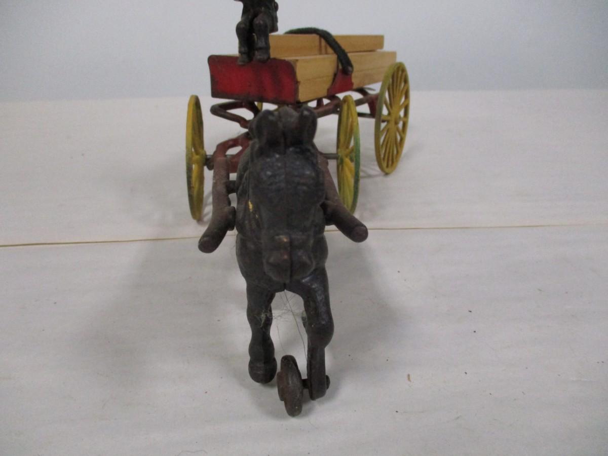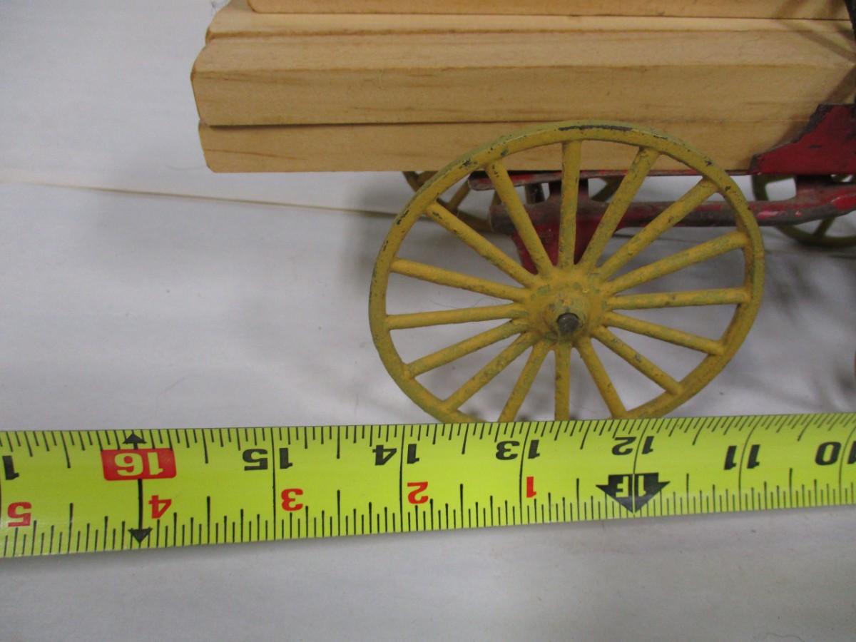 Vintage Kenton Cast Iron Dray Wagon with Driver & Wood Blocks with Driver