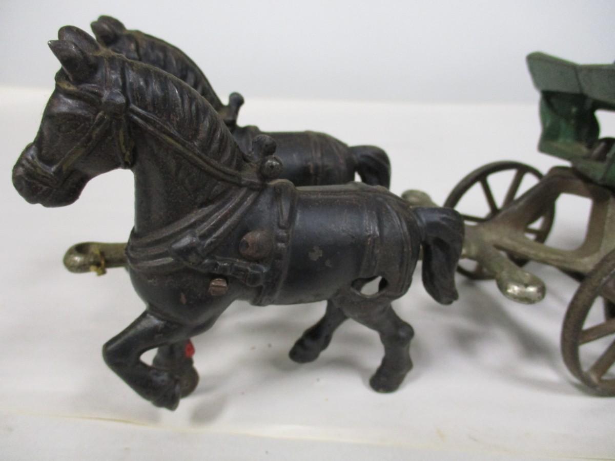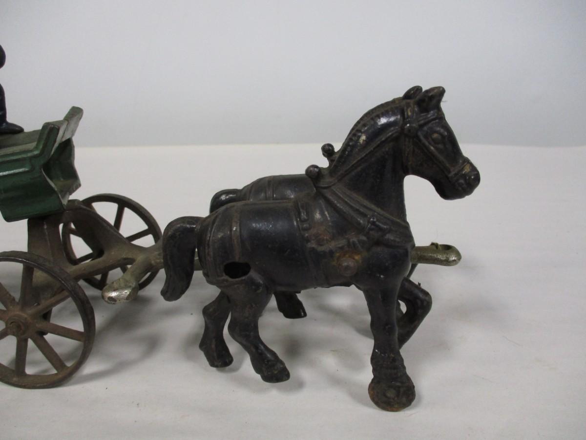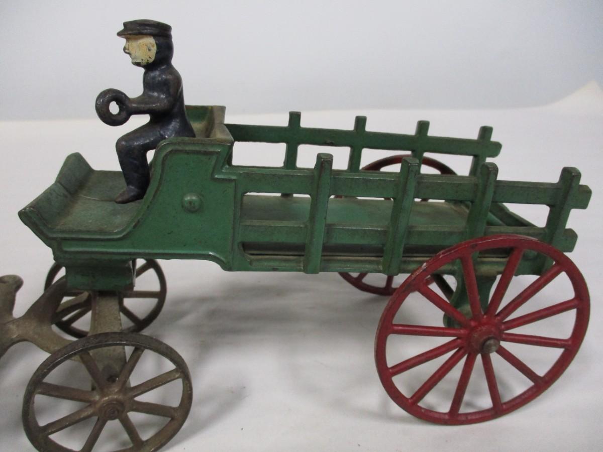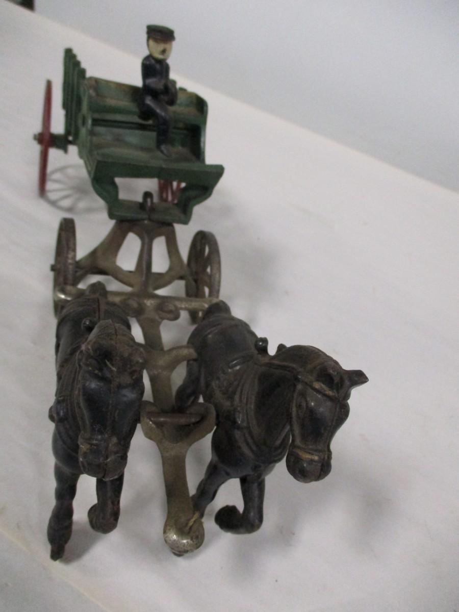 Vintage Kenton Cast Iron Double Horse Team Horse Drawn Dray Wagon with Driver