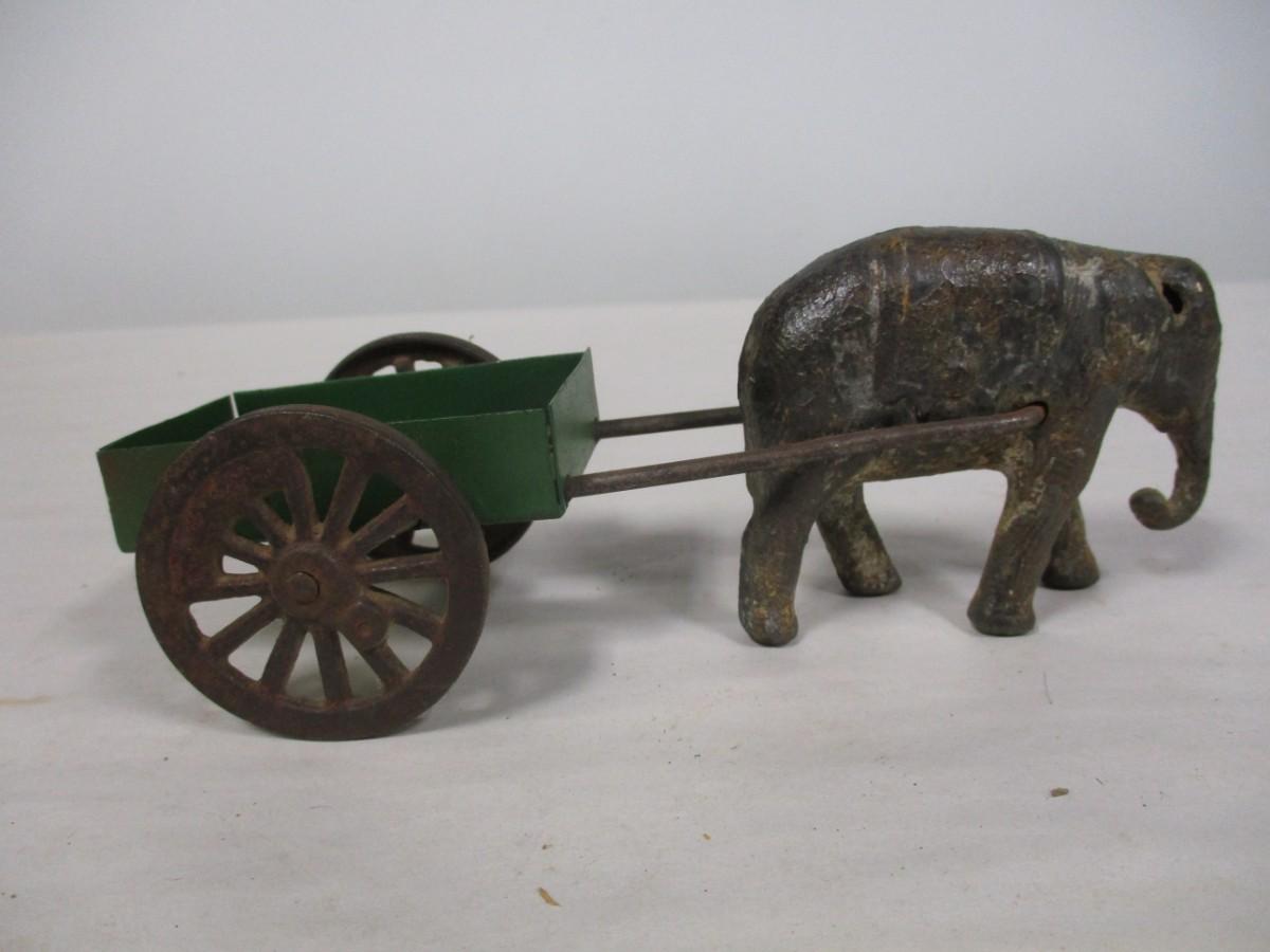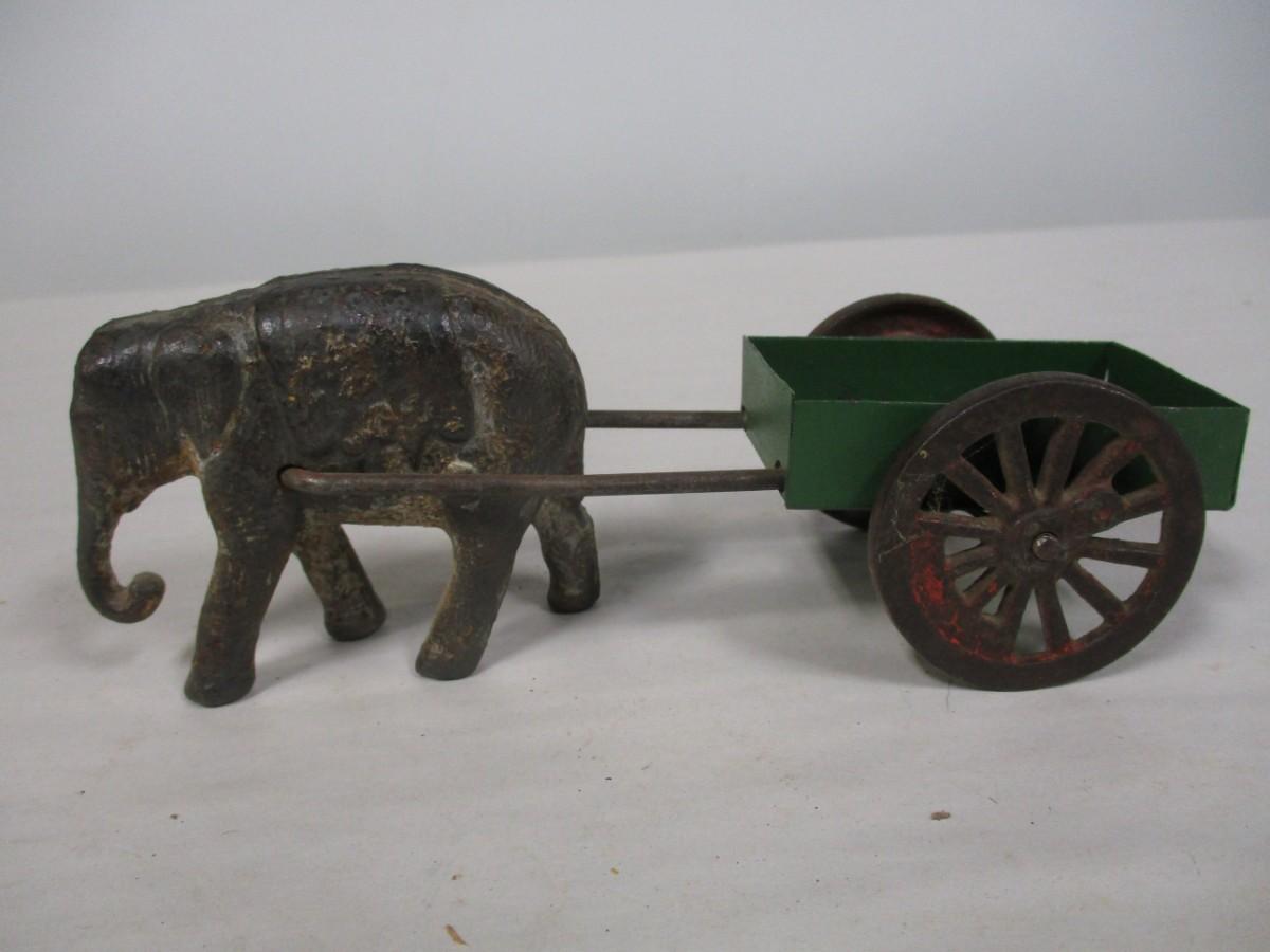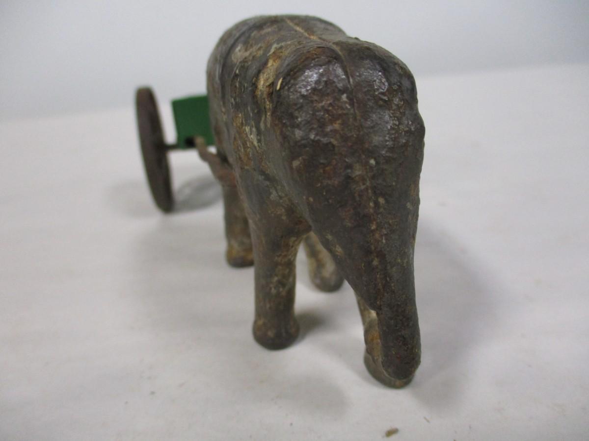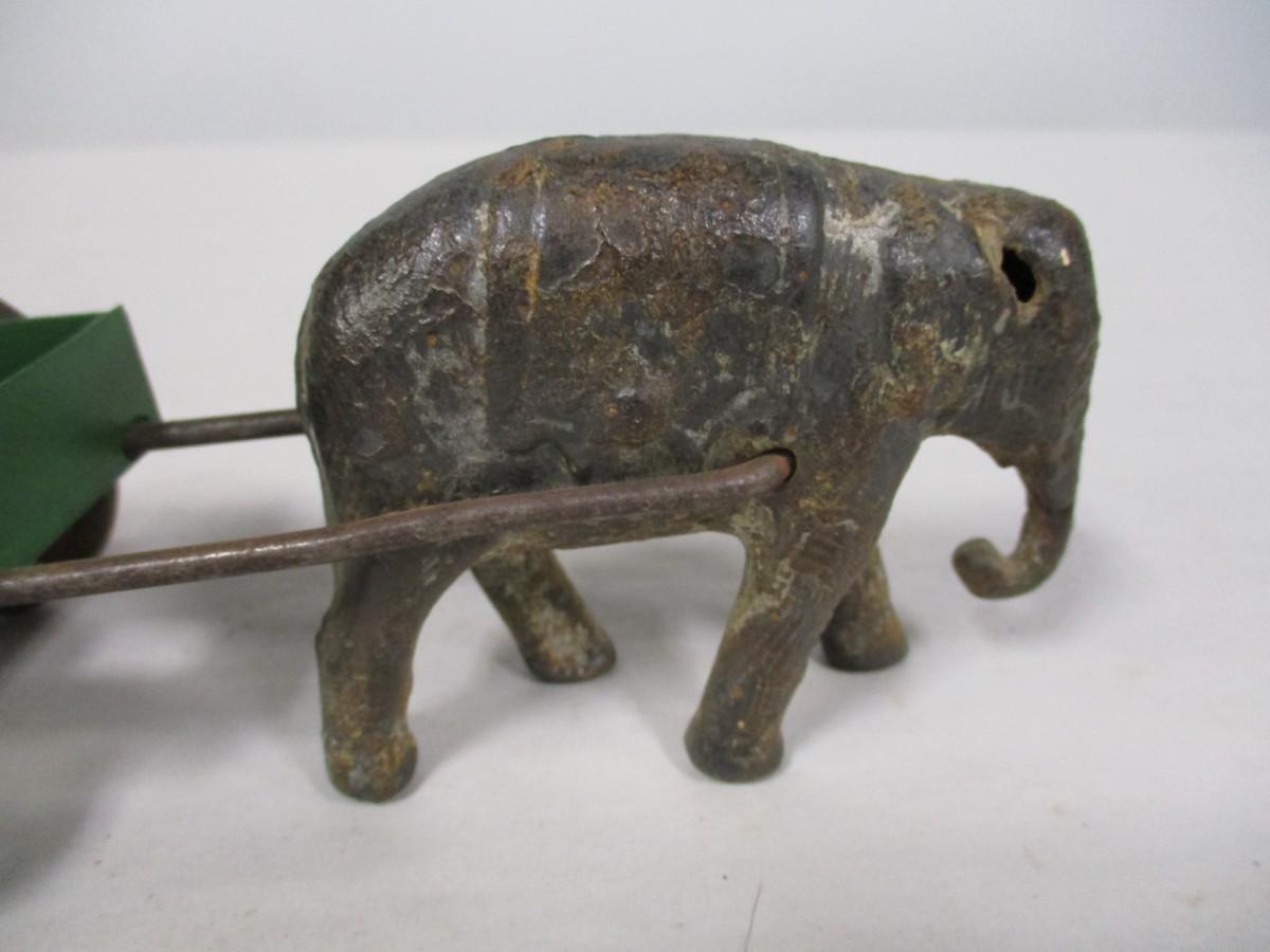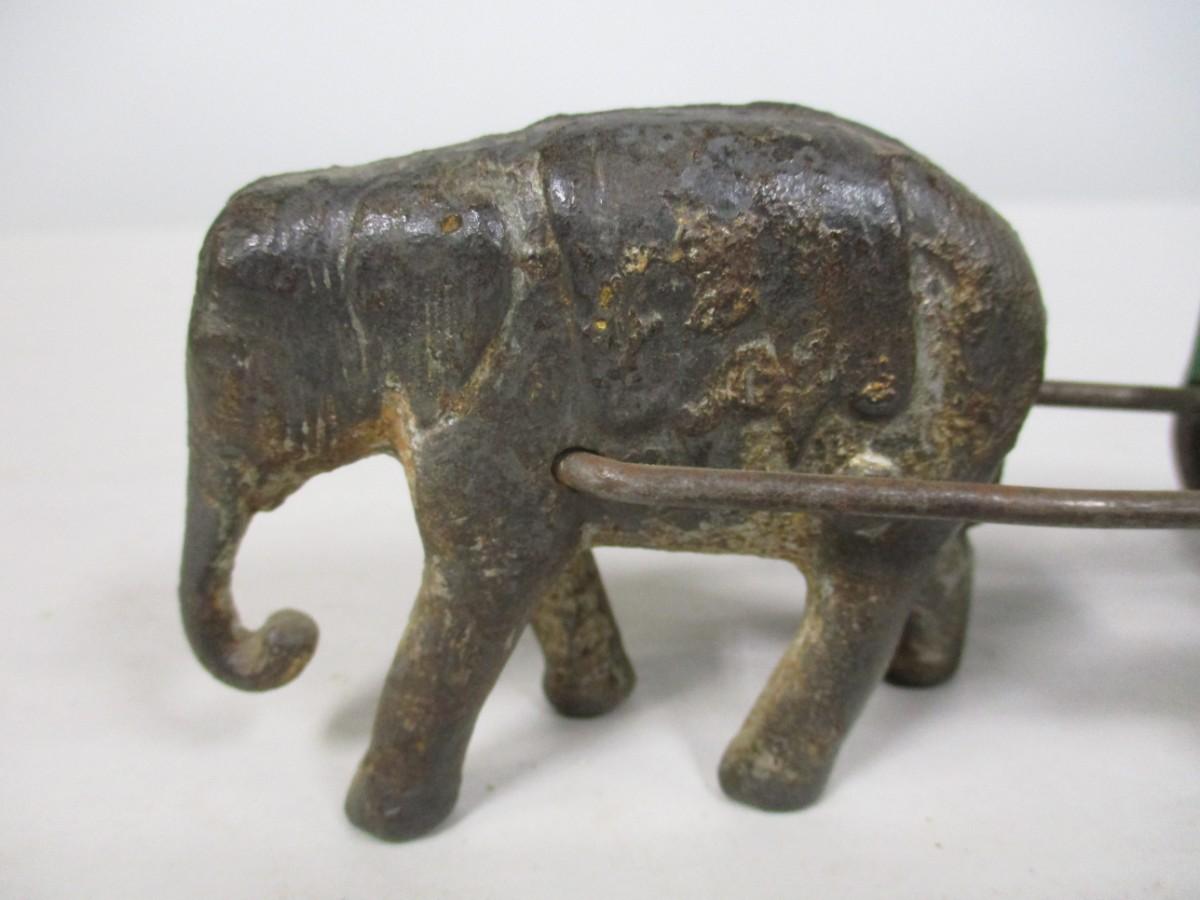 Vintage Kenton Cast Iron Egyptian Elephant Drawn Tin Cart