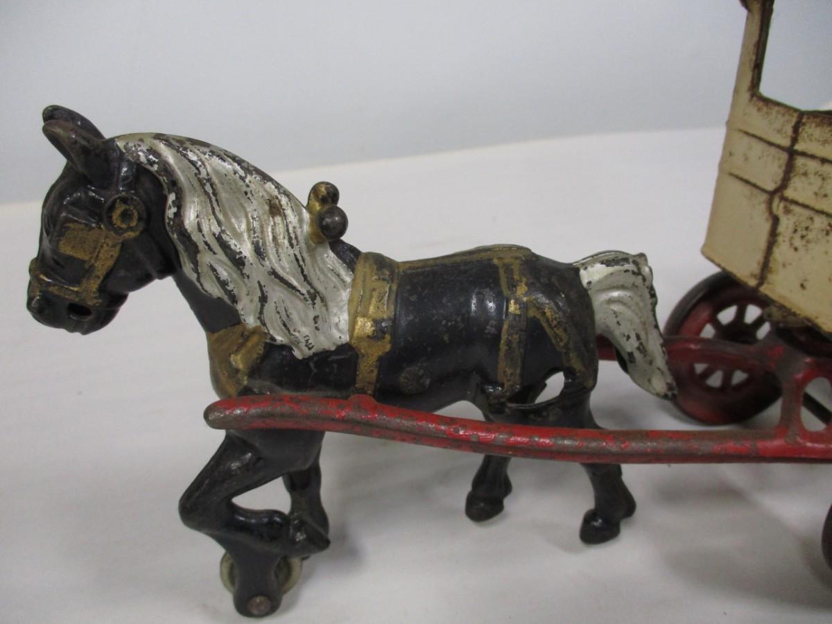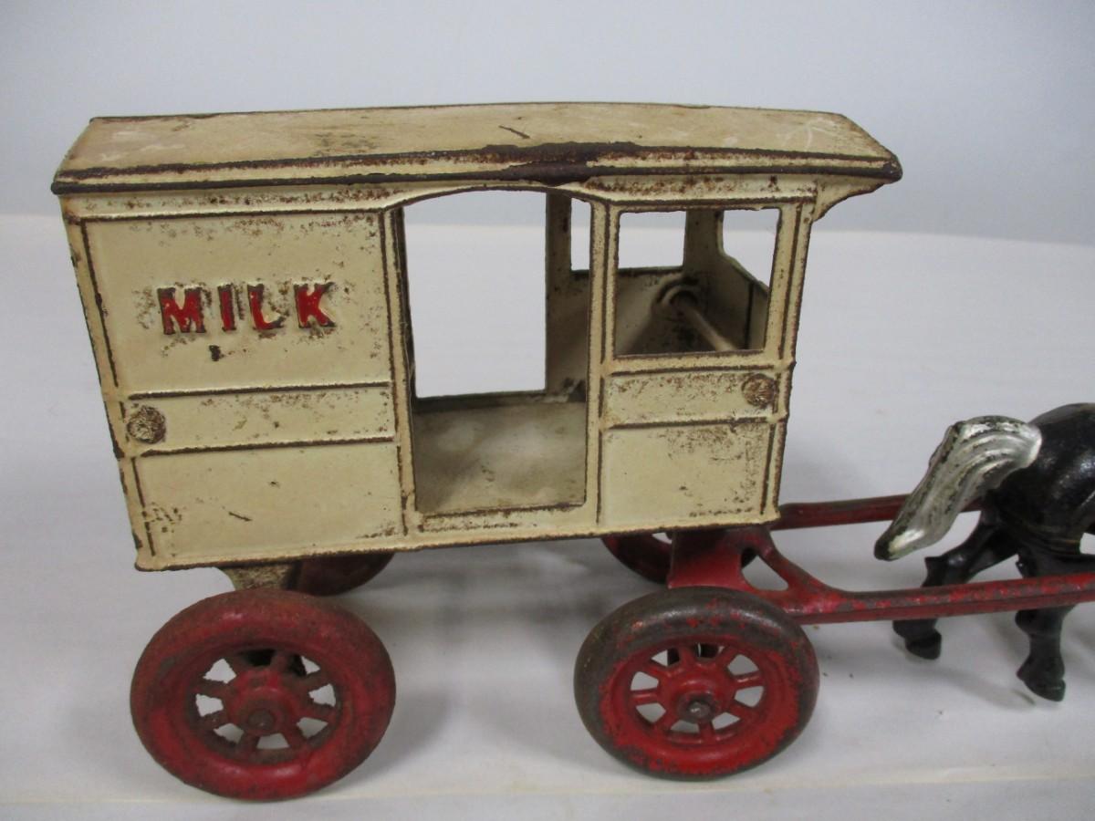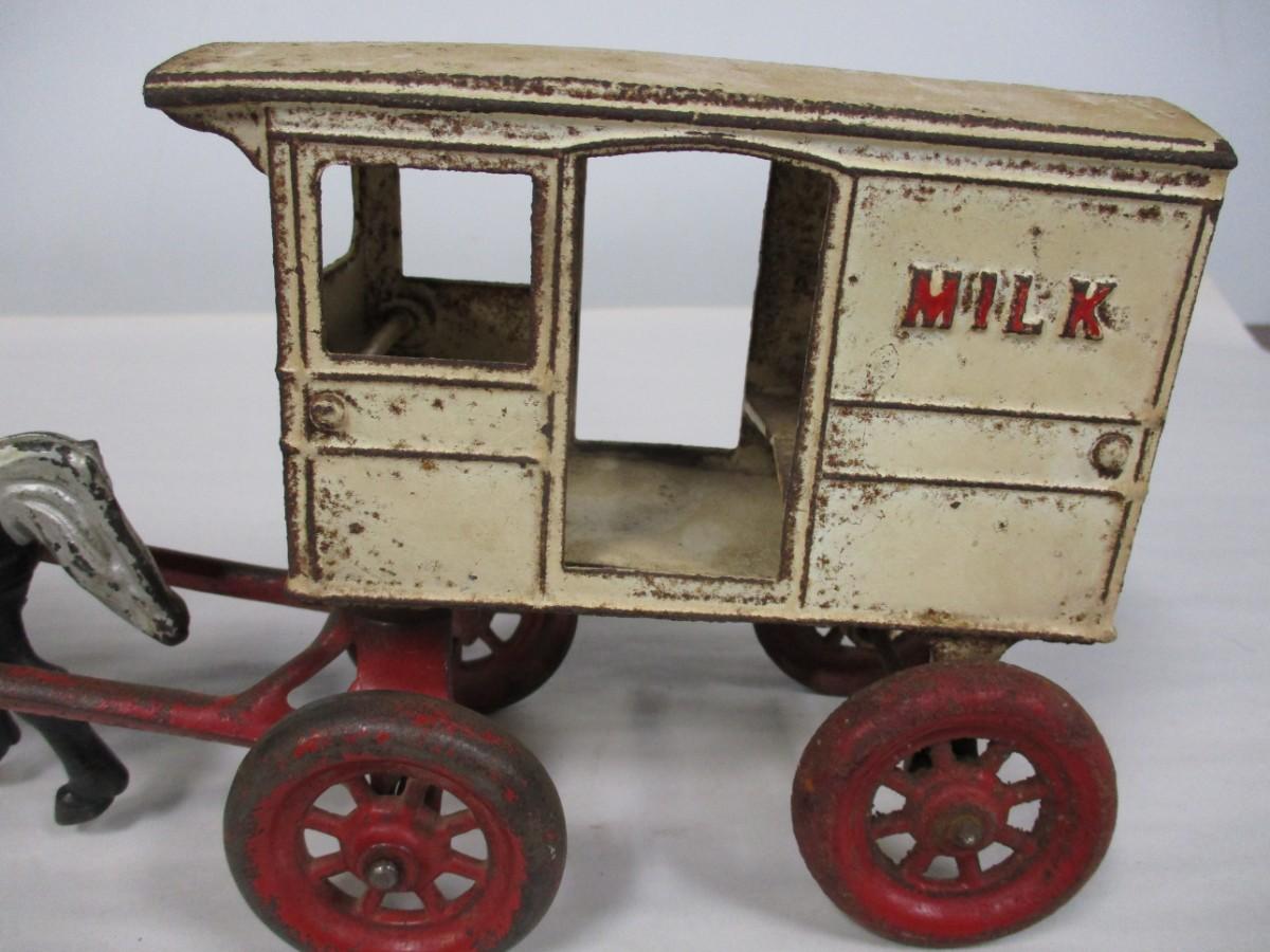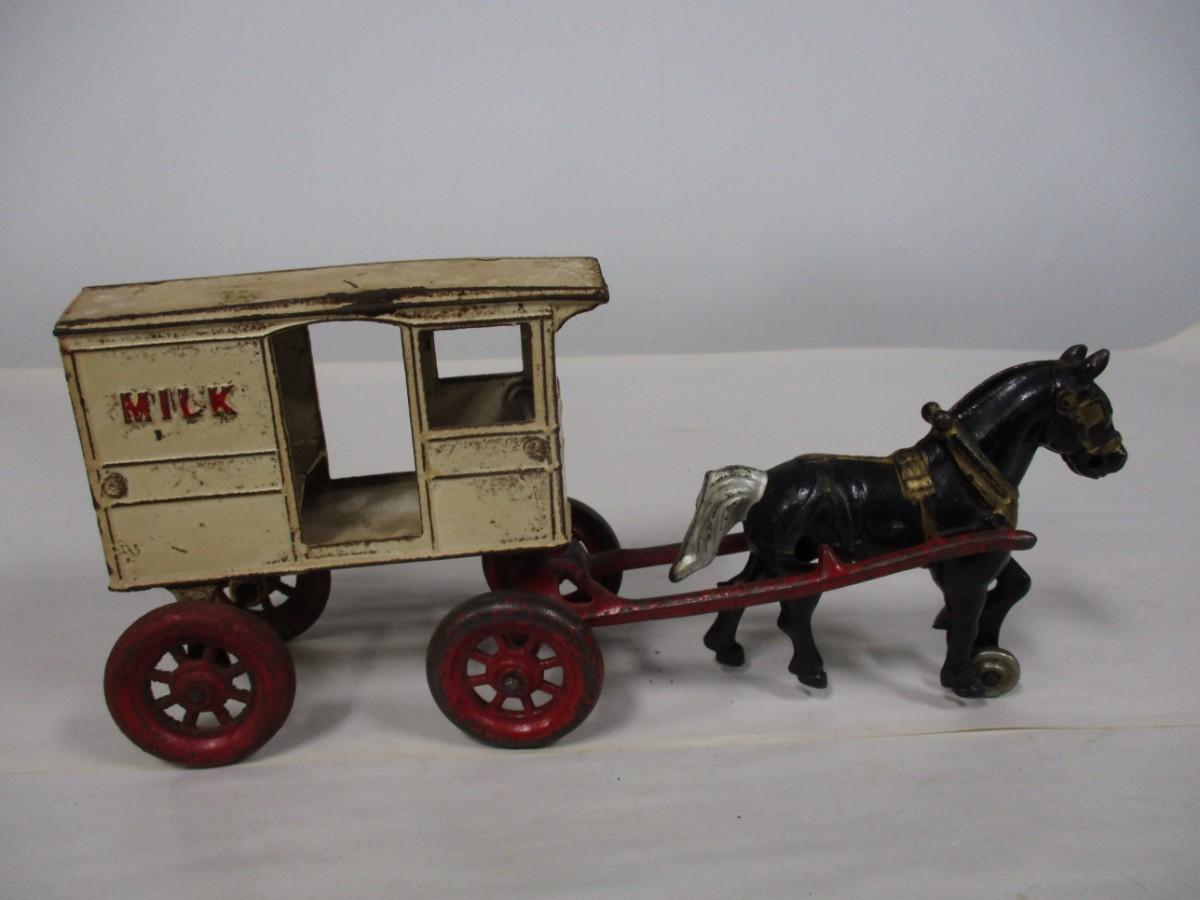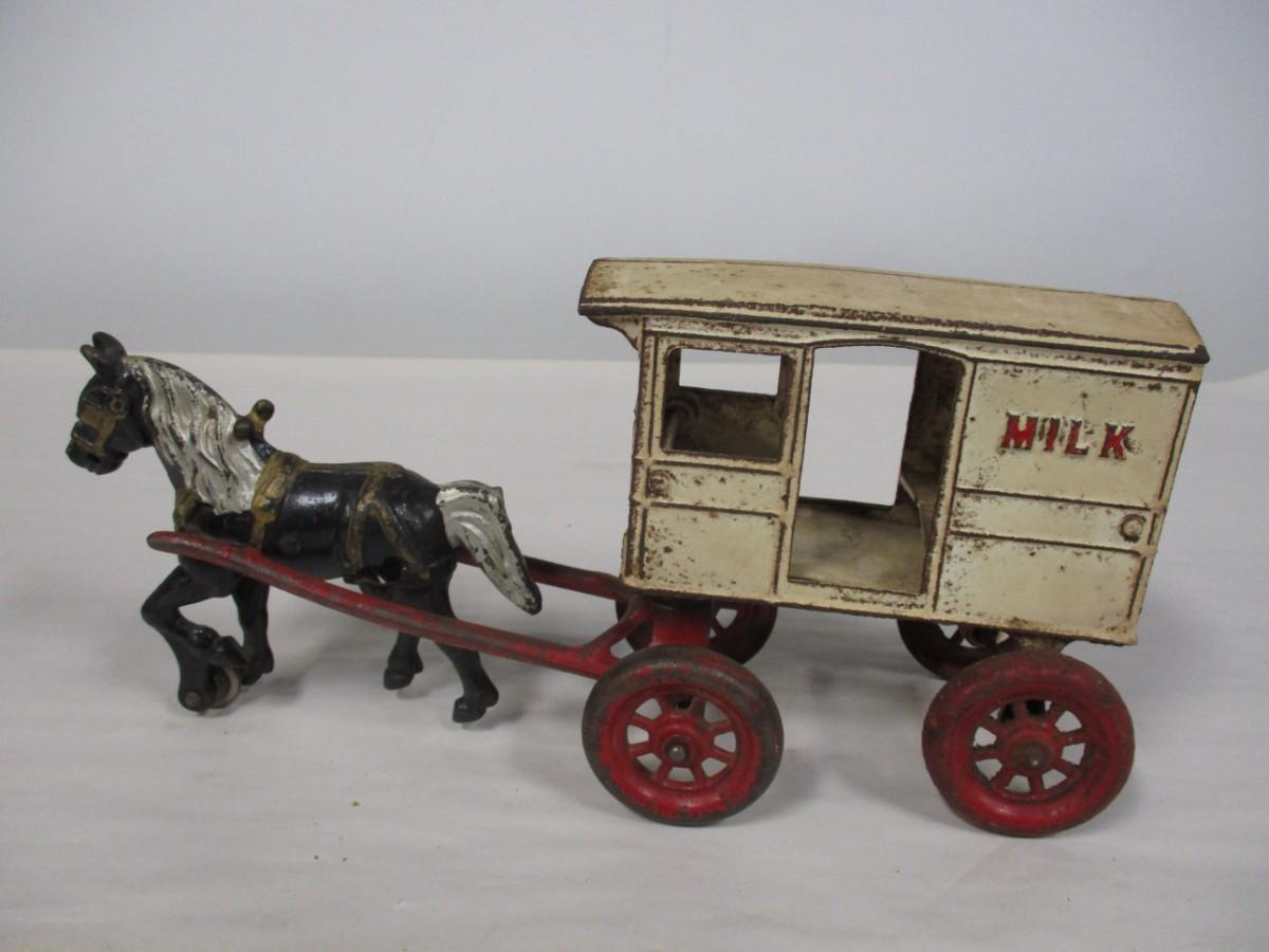 Vintage Kenton Cast Iron Horse Drawn Milk Wagon