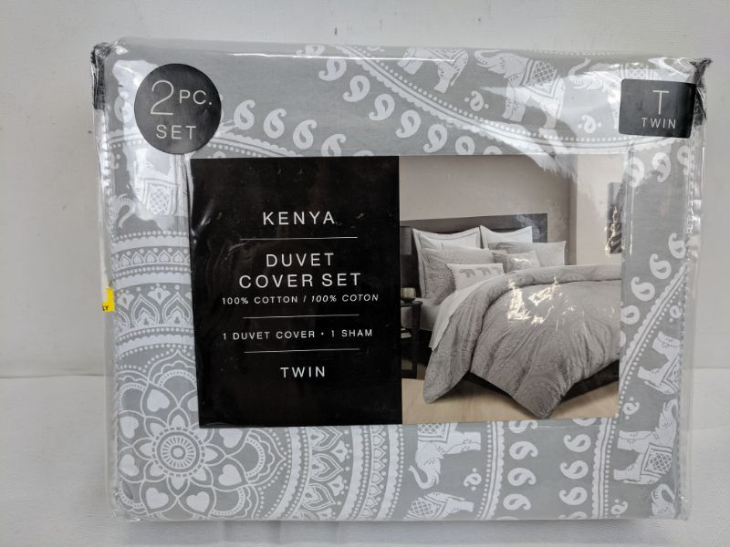 Kenya Duvet Cover Set, Gray Elephant, Twin - New
