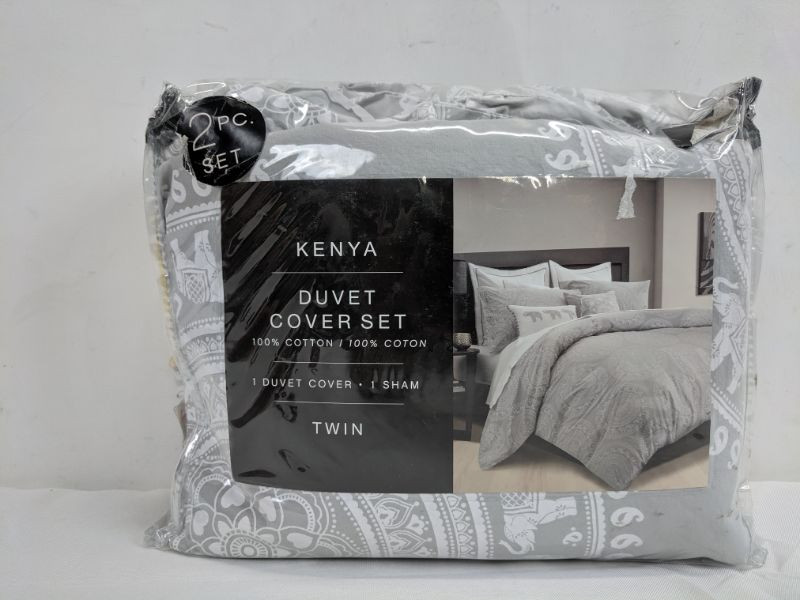 Kenya Duvet Cover Set, Gray Elephant, Twin - New