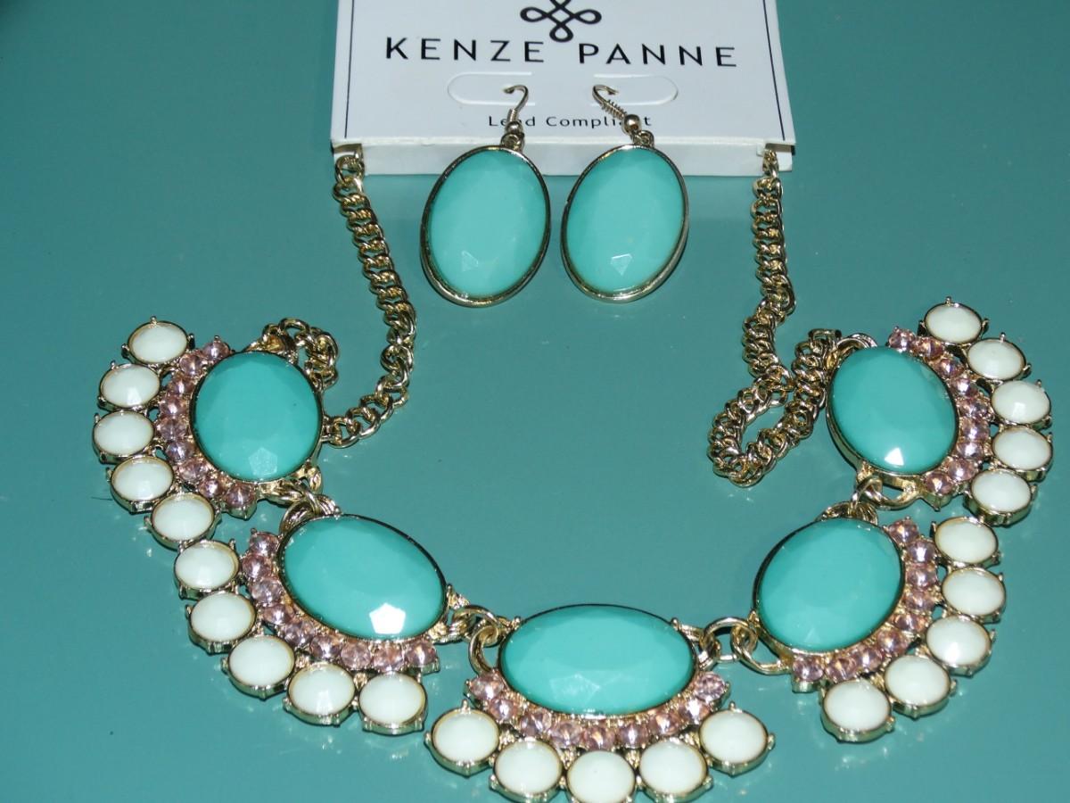 Kenze Panne Teal & White Gold Tone Jewelry Set